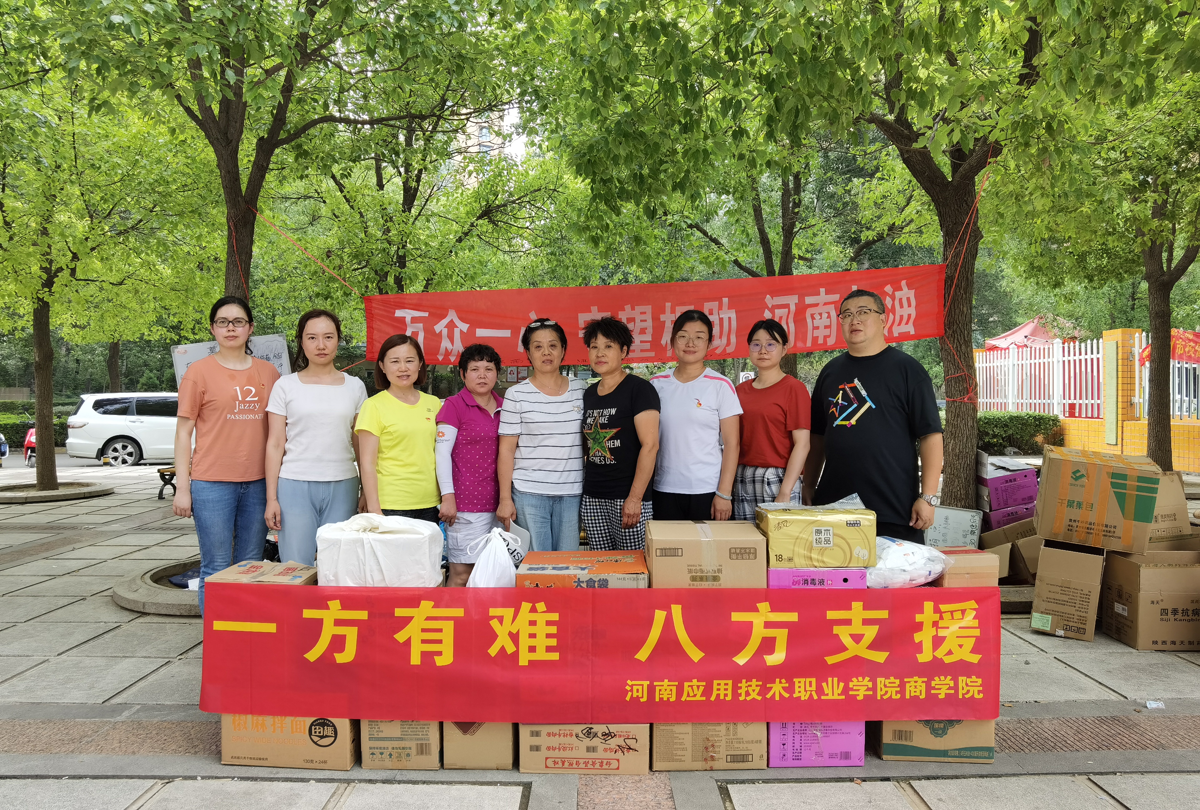 7月26日,公司党总支书记周燕同志带领部分党员老师来到绿都城社区,将一箱箱口罩、酒精、消毒液、碘伏、、卫生纸、方便面等抗灾物资转交给绿都城社区爱心捐赠处,由绿都城社区工作人员统一将抗洪物资运送到受灾严重的浚县等地,为防汛工作奉献爱心。