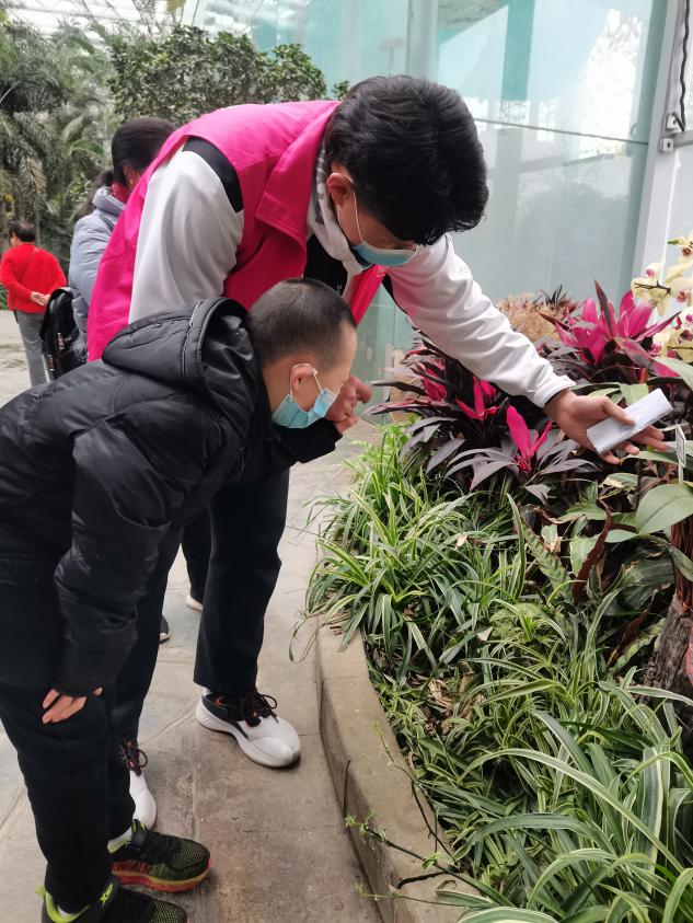 春日里阳光暖人,孩子们早早地被送到植物园门口,粉马甲志愿者们受到了热烈欢迎。志愿者们按照任务分工,与孩子们进行1:1匹配,组成游园小组,根据任务书和游园地图,带领孩子们完成植物园的春日探索任务。志愿者们亲切的带领孩子们去温室参观热带雨林植物,寻找牡丹花、樱花等植株所在地,他们耐心地讲解,给他们拍照,照护他们安全健康游园。在志愿者与孩子们心与心的交流过程中,孩子们感受到了来自志愿者们的关爱,他们相处的其乐融融。