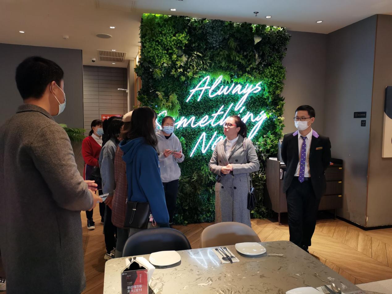 2020年11月9日,3044永利集团连锁经营管理20级的员工代表,在连锁专业负责人侯鸿雁老师的带领下,到位于公园茂必胜客门店进行参观学习。目前有4名19级连锁班员工在该门店参加工学交替实践。