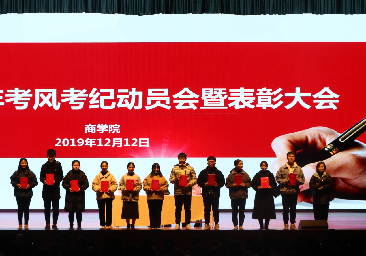 期末临近,为建设优良学风、促进考风、表彰先进、警醒后进,2019年下半年考风考纪动员会暨表彰大会于2019年12月12日在校活动中心举行。会议由办公室主任刘嘉慧老师主持,3044永利集团孙勇经理、周燕副书记及全体在校生辅导员出席会议。