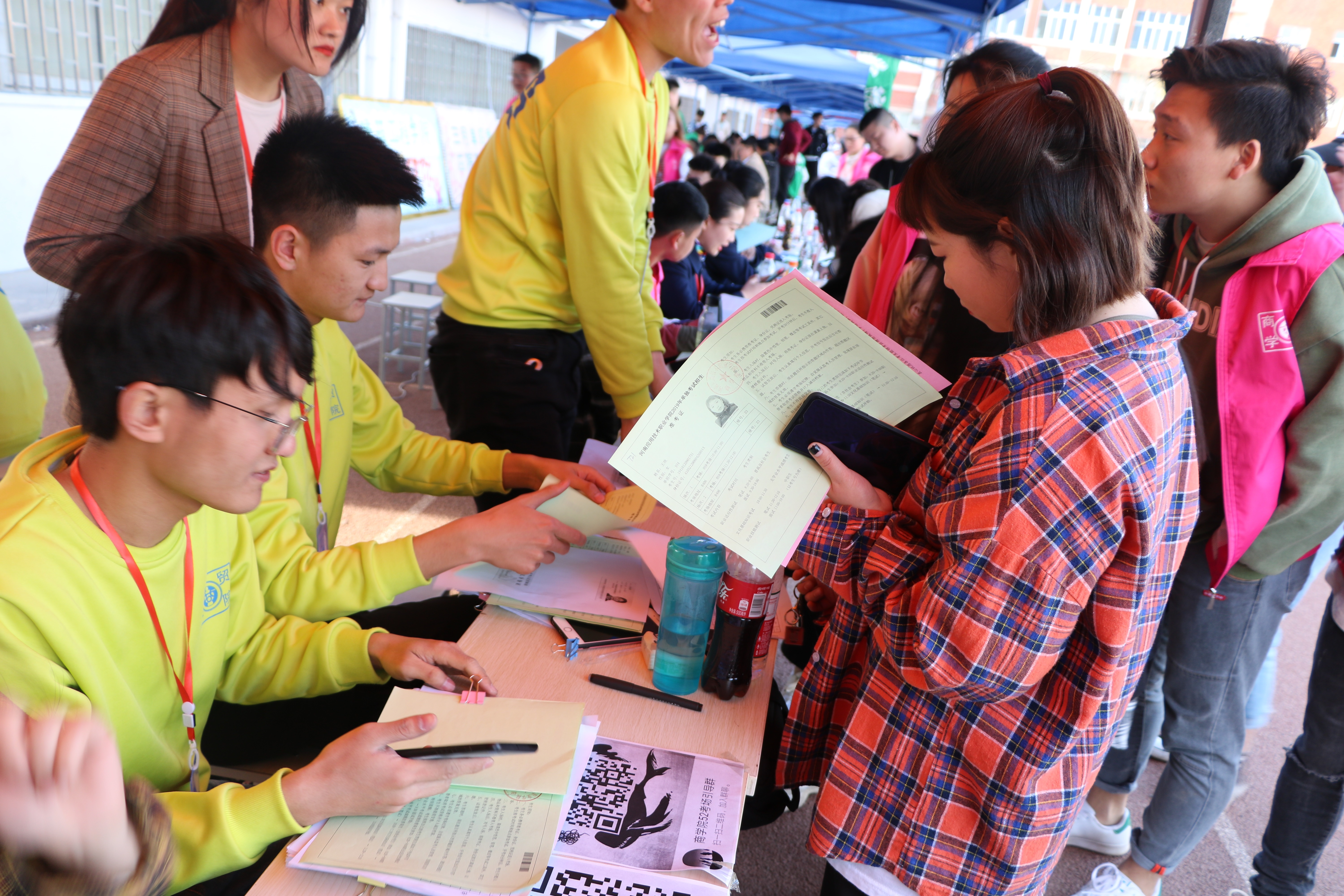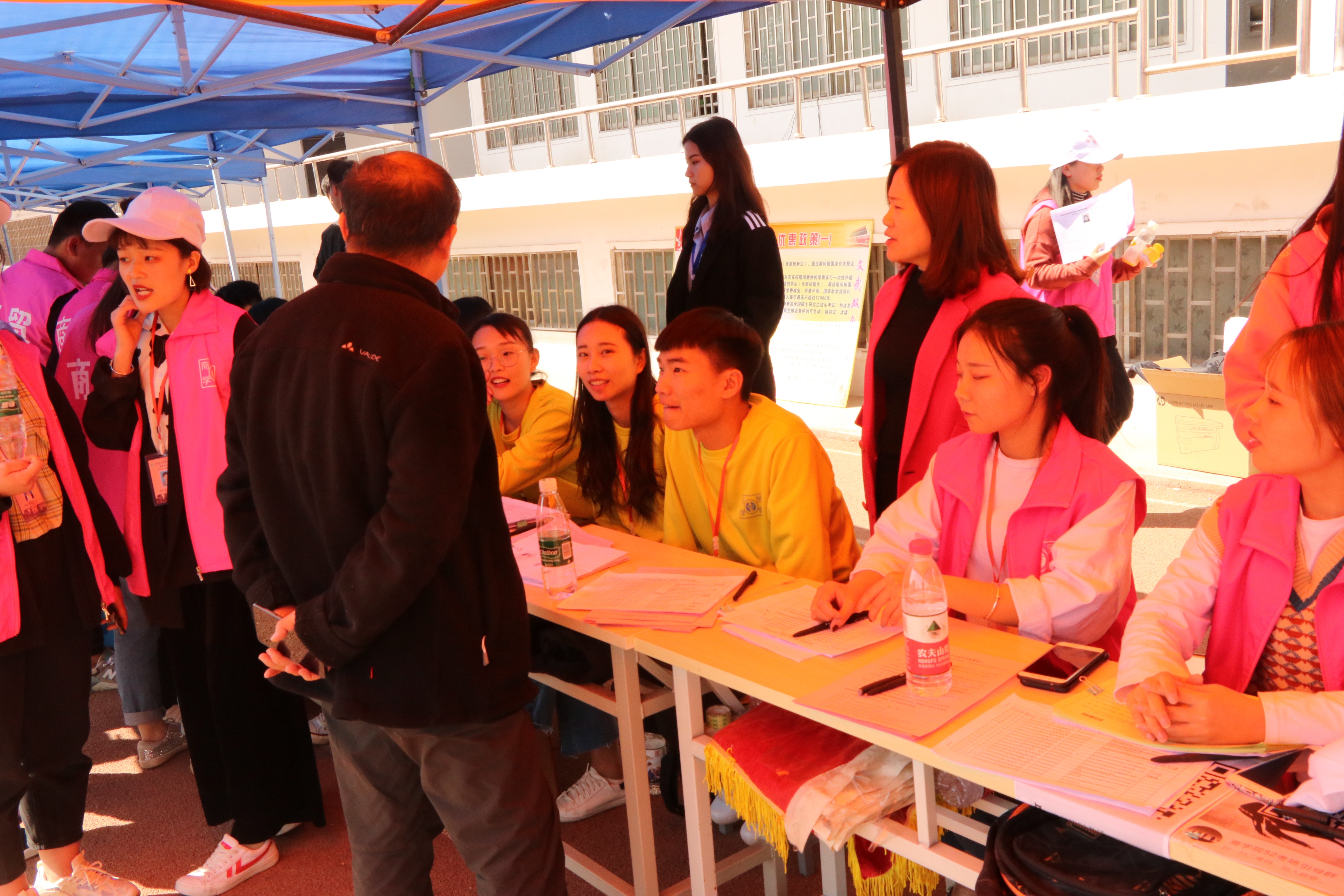 3月30日天空格外的蓝,3044永利集团员工会成员早早把帐篷搭建在操场主席台正下方,等待着可爱的19们的到来。从院门口负责接待的空乘小姐姐,到负责登记信息的靓学姐,再到带领考生参观公司以及看考场的小哥哥,到处涌现着3044永利集团“小粉”的身影,3044永利集团小粉用最积极最热情的态度尽可能的让小19和陪同的家长满意。