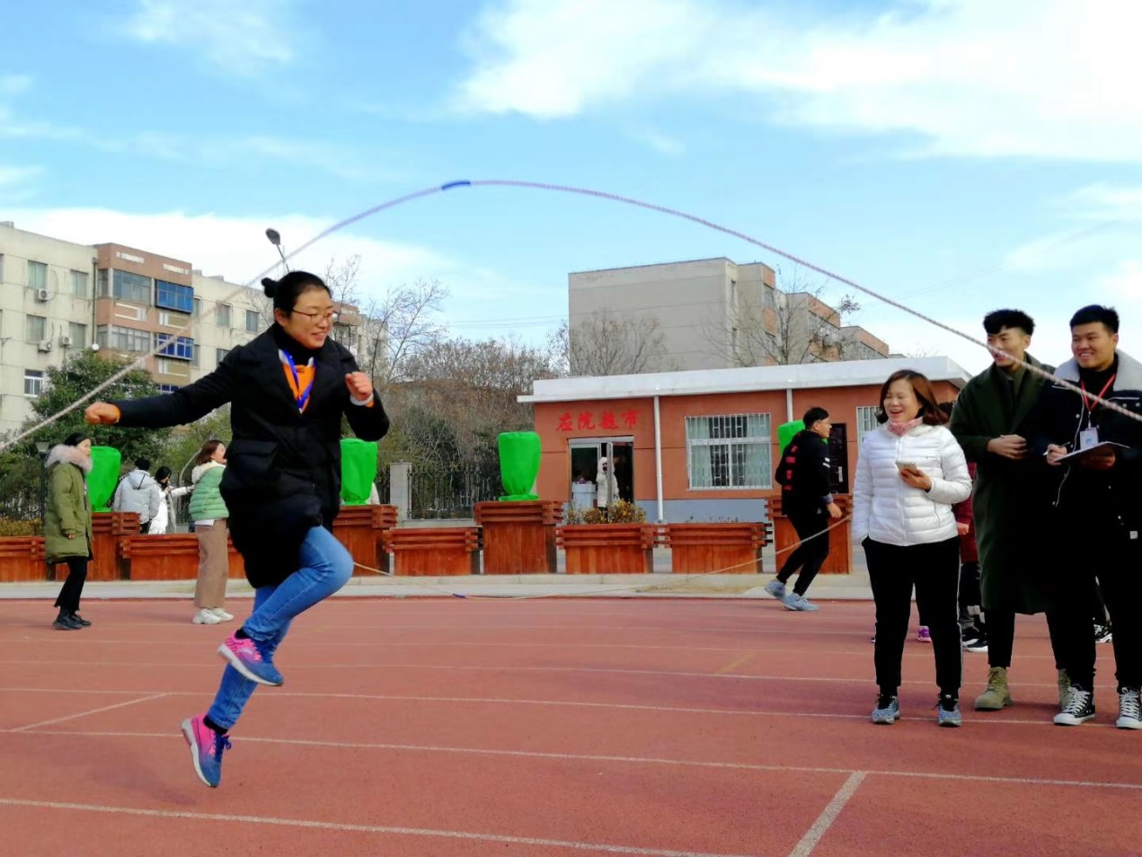 本次工会活动共分为3个竞技项目,按分工会小组进行,简单的热身后健身一小时活动拉开序幕。首先是教师2公里健步走,要求教工在操场上围绕着400米跑道完成5圈的快走任务;集体用时少的工会小组获胜。后两个项目是集体项目,2分钟跳大绳和50米拍球接力跑。尽管冬日里冷的让人刺骨,但老师们的热情比较高,健步走很多老师到最后都跑起来,跳绳比赛及拍球跑更是赛的热火朝天,看看我们的比赛精彩瞬间吧。