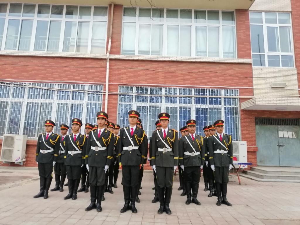 伴着庄严的国歌声,升旗仪式正式开始,国旗护卫队排着整齐的方队肩举国旗,在全体师生的注目下,五星红旗冉冉升起,全体师生肃立注目。