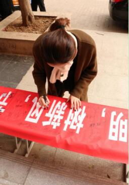阳春三月,绿柳成荫,郑州威尼斯城开社区服务中心门前热闹非凡,无论过往的买菜的大妈,遛弯的老人,接孩子的父母,还是刚刚放学的员工,都驻足在巨大的条幅前,听着公司党员志愿者讲解垃圾的危害、家庭生活垃圾分类的小方法。在“讲文明,树新风,节约环保在心中,动动手、分分类,绿水青山齐保卫”的条幅上,热心的居民纷纷留下自己的签名,有的还打电话叫来附近的家人,一起为共同的生活环境做一点贡献。瞧,他们签名是多么的认真!