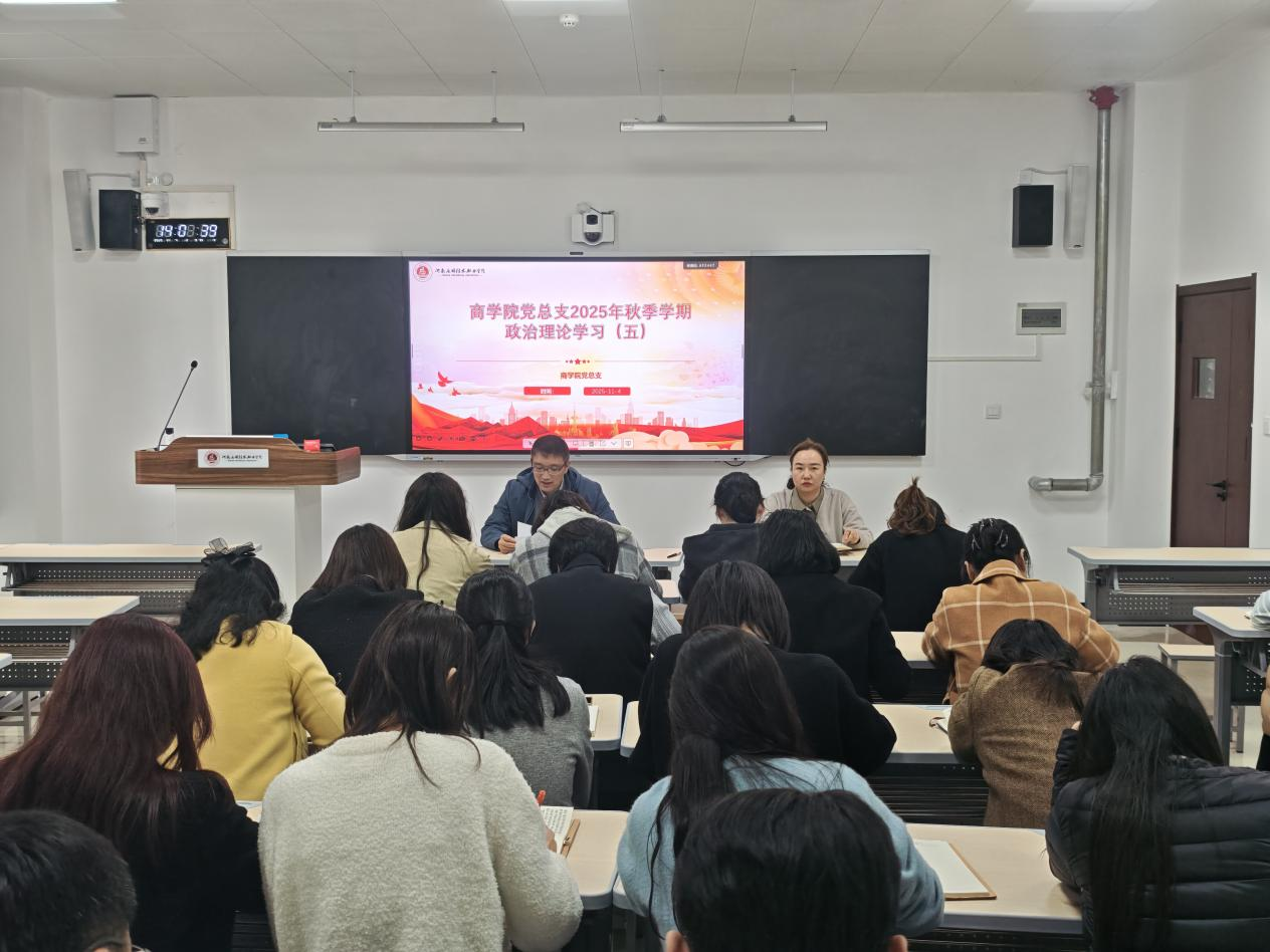 首先,荆伟科领学《2025-10-24 中共中央召开党外人士座谈会 习近平主持并发表重要讲话》阐述“十五五”规划建议核心要点,强调锚定现代化目标、推动科技自立自强与共同富裕,要求教师将思想行动统一到党中央部署,在商科教学中融入国家战略;并介绍各民主党派等提出的扩大内需、构建现代化产业体系等建议,阐释“发扬民主、集思广益”的决策意义。