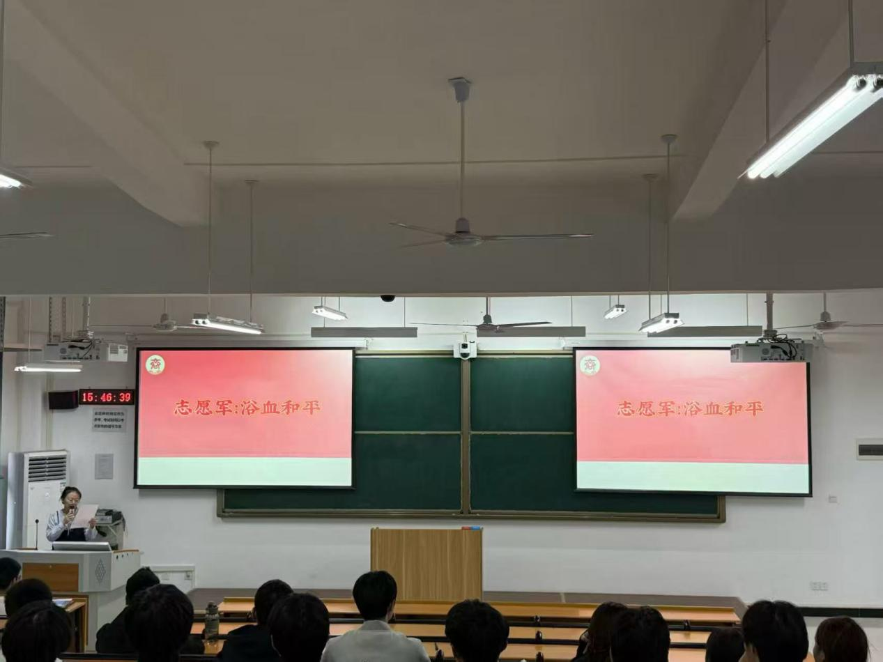 影片放映前,3044永利集团学工党支部党员教师吴淼结合历史背景作专题讲解。她从抗美援朝战争切入,解读“747天停战谈判”的战略意义,点明上甘岭战役对国家尊严的捍卫,并强调志愿军“钢少气多”的信念是真实历史的缩影,为观影筑牢认知基础。