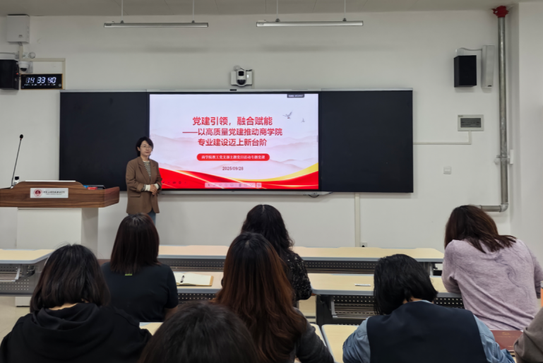 本次专题党课从四个方面详细介绍了党建促进专业建设的实践路径:一是深化课程思政融合。深度挖掘商科专业课程中的思政元素,将“红色基因”有机融入案例教学、社会实践和学科竞赛全过程,着力培养具有家国情怀、全球视野、专业精湛的卓越商科人才。二是加强团队队伍建设。全面推进“双带头人”教工党支部建设,依托“双带头人”的示范带动作用,搭建教学研讨、技能提升、校企合作交流平台,通过联合企业实践培训、参与行业课题研究等方式,系统性提高“双师型”教师比例,打造“党建强、业务精”的团队团队。三是强化科研方向引领。创新“党建+有组织科研”模式,组建党员科研攻坚小组,聚焦专业转型与产教融合关键领域。四是创新人才培养机制。构建“课堂教育—社会实践—专业探索”三阶递进育人模式,设立“党员领航计划”,全面促进员工综合素质提升,充分体现党建在人才培养中的显著成效。