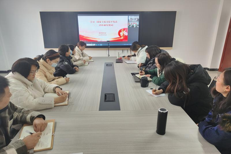 首先,学工办主任刘超老师领学了《国家主席习近平发表二零二四年新年贺词》,在新年贺词中,指出人民是历史的创造者,人民是真正的英雄,中华民族5000多年砥砺前行,是中国人民书写了波澜壮阔的发展史、创造了博大精深的中华文明。新中国成立以来,多少闯关夺隘、多少无畏探索,亿万人民尽锐出战,以澎湃伟力推动发展实践,让“中国号”巨轮乘风破浪、行稳致远。进入新时代,党团结带领全国各族人民自信自强、守正创新,成功推进和拓展了中国式现代化,实现中华民族伟大复兴进入了不可逆转的历史进程。