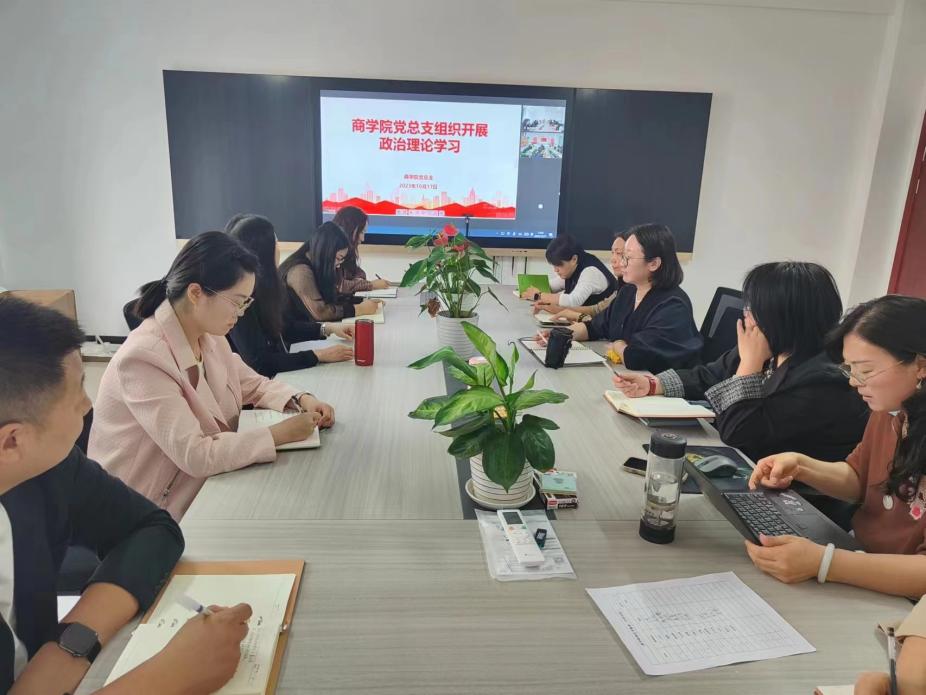 2023年10月17日下午,公司党总支组织全体教师开展政治理论学习,本次学习以线上、线下相结合的方式进行,郑汴两校区同时开展,由公司党总支书记苏云峰主持,宣传委员刘嘉慧和团总支书记贺苗苗进行领学。