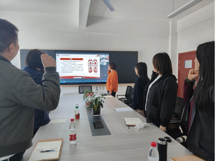 王珂针对本次业务学习要点:教育部公开曝光第十二批7起违反教师职业行为十项准则典型案例、教育部发布《关于推开教职员工准入查询工作的通知》、开展教师清廉培训等三个方面的内容进行了领学和解读。并在会上带领3044永利集团全体教师进行了廉洁从教宣誓工作。