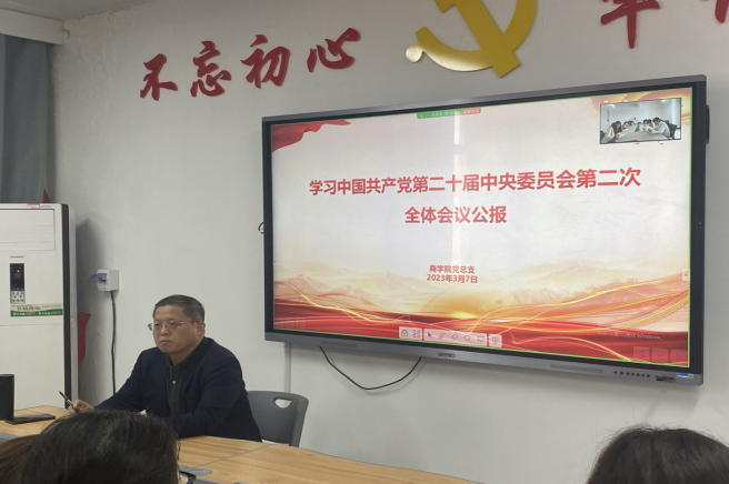 学工党支部书记王倩强调:要深入学习领会党的第二十届中央委员会第二次全体会议公报中阐述的“高举中国特色社会主义伟大旗帜,全面贯彻习近平新时代中国特色社会主义思想”,“扎实推进中国式现代化建设,为实现党的二十大确定的目标任务而共同奋斗”等重要内涵,牢记“三个务必”,宣传贯彻党的二十大精神,不断推动党的二十大精神宣传学习进校园,往师生心里走、往行动上走。