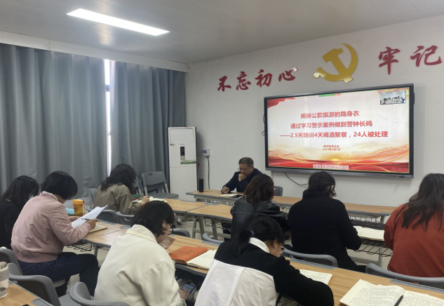 会议集中学习了《中国共产党第二十届中央委员会第二次全体会议公报》、《习近平在中央党校建校90周年庆祝大会暨2023年春季学期开学典礼上发表重要讲话强调:坚守党校初心 努力为党育才为党献策》、《揭掉公款旅游的隐身衣 通过学习警示案例做到警钟长鸣——2.5天培训4天喝酒聚餐,24人被处理》等学习文件。
