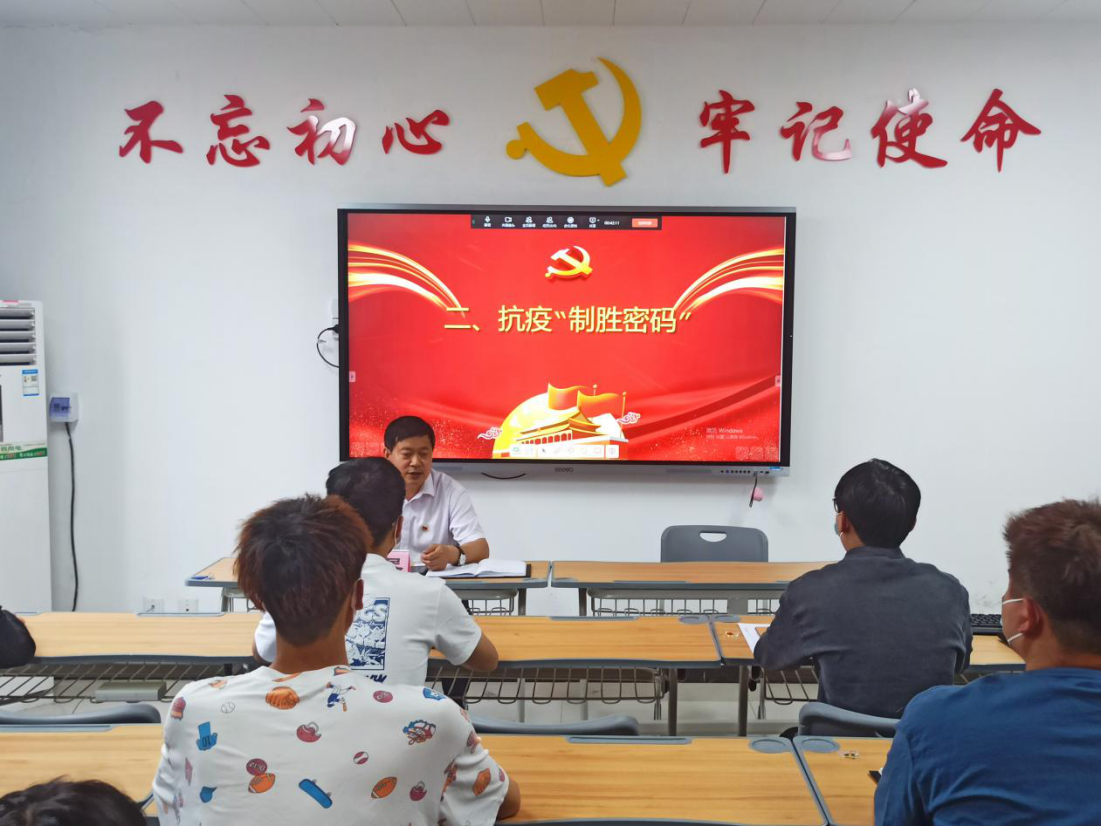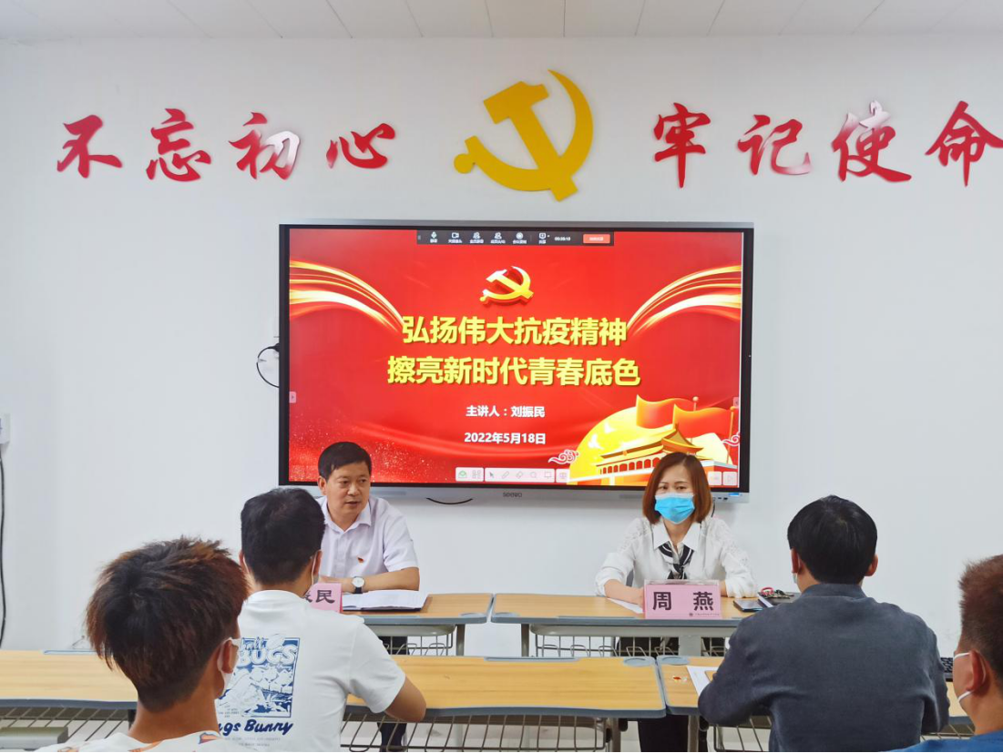 人无精神则不立,国无精神则不强。新冠肺炎疫情形势仍然严峻,为进一步巩固校园疫情防控成果,坚定师生战疫必胜信念,5月18日下午,副董事长刘振民在办公楼504为公司党员师生上了一堂生动的弘扬抗疫精神专题思政课。本次思政课由公司党总支书记周燕主持,预备党员以及部分入党积极分子代表线下参加,其余入党积极分子线上同步进行学习。