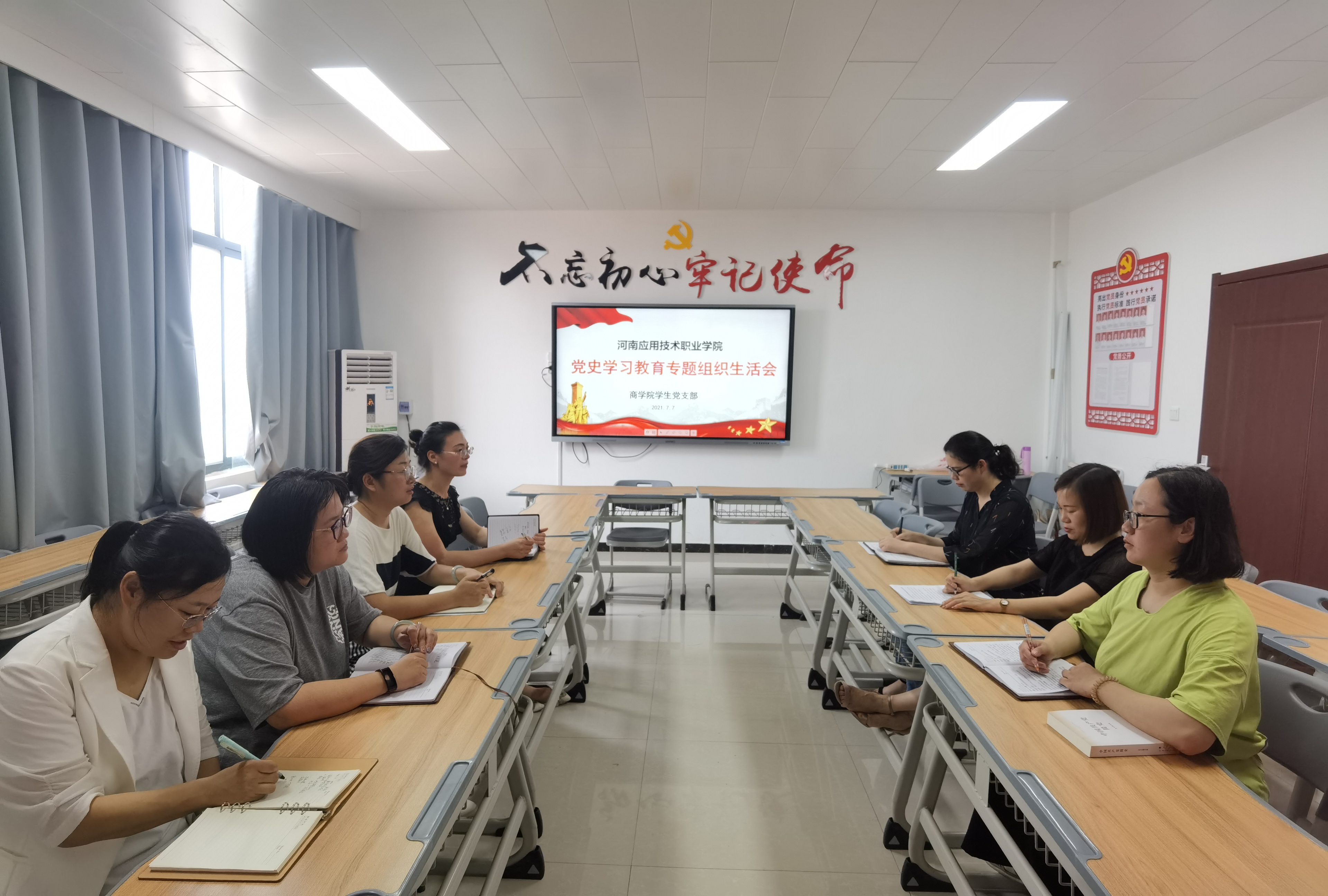 员工党支部随后在504召开会议,会议共7名党员参加,由支部书记周燕同志主持会议,周燕同志首先总结了员工支部自开展党史学习教育以来的学习情况和活动组织情况,并带头进行了自我学习情况剖析检查,开展自我批评并听取其他党员批评意见。随后其他党员老师一次进行自我检查,在相互批评阶段,大家都能够结合实际学习成效,把思想问题摆进去深入分析思想根源,达到共同进步共同提高的目的。