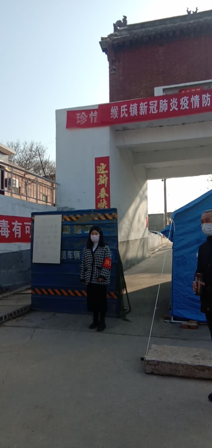 电商1805班张宁同学在当地村口卡点执勤