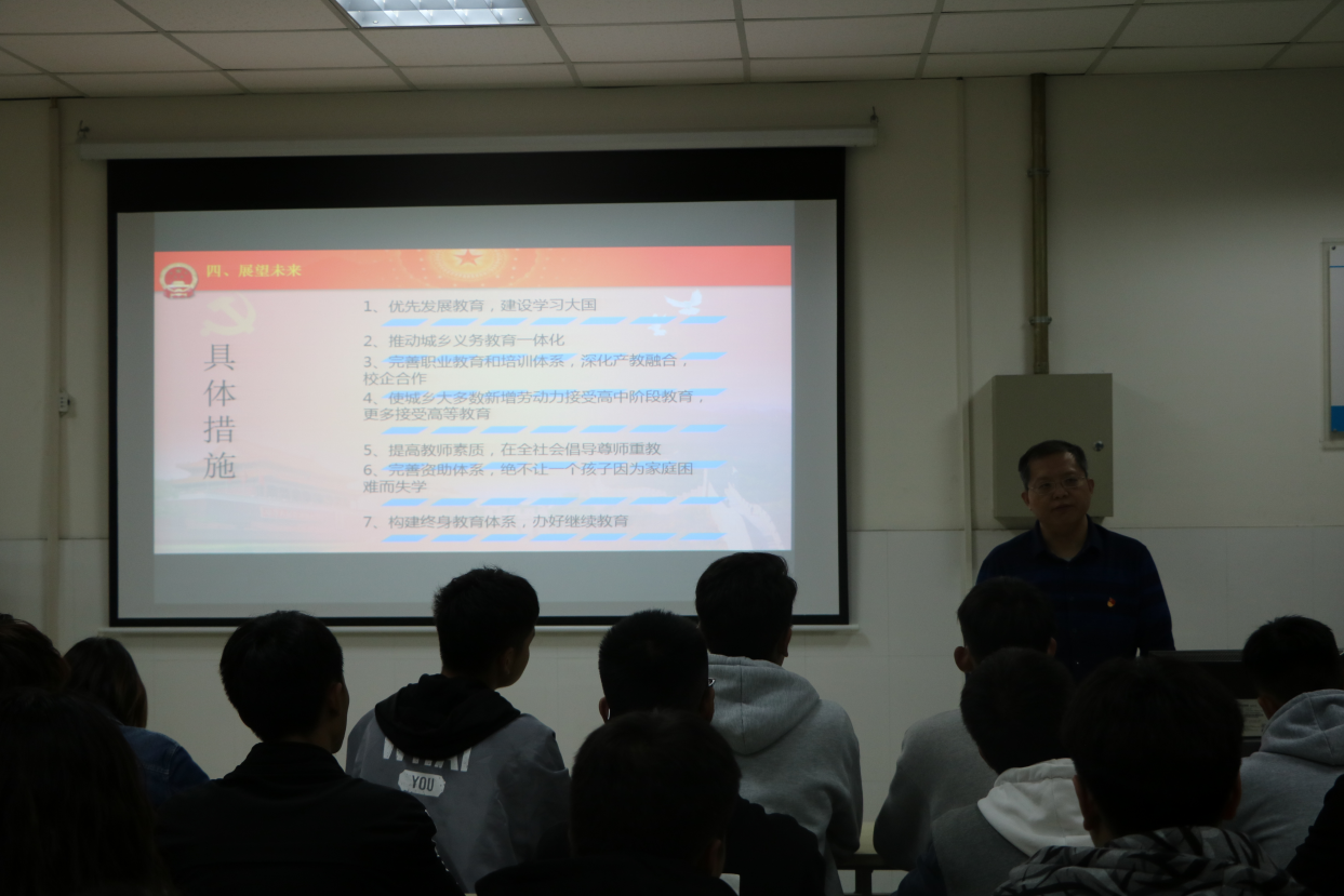 千秋基业,教育为本。公司为提高参与技能大赛同学们的积极性,强调深化教育事业的重要性。2019年11月11日晚上在E615为营销协会及参与技能大赛的同学们开展了主题教育党课,此次党课由李力老师主持、侯鸿雁老师组织现场,由公司党总支书记、经理孙勇担任主讲人。