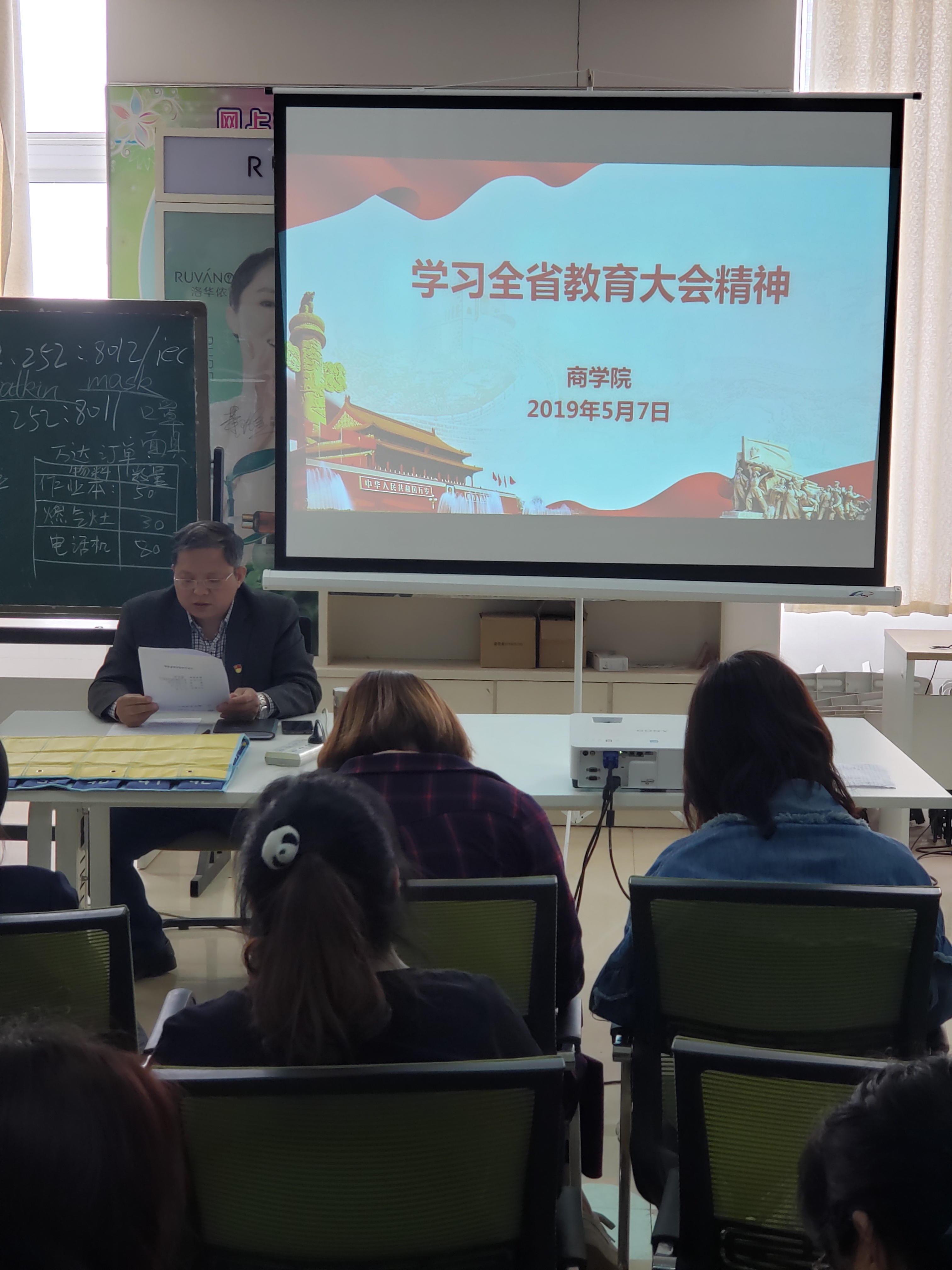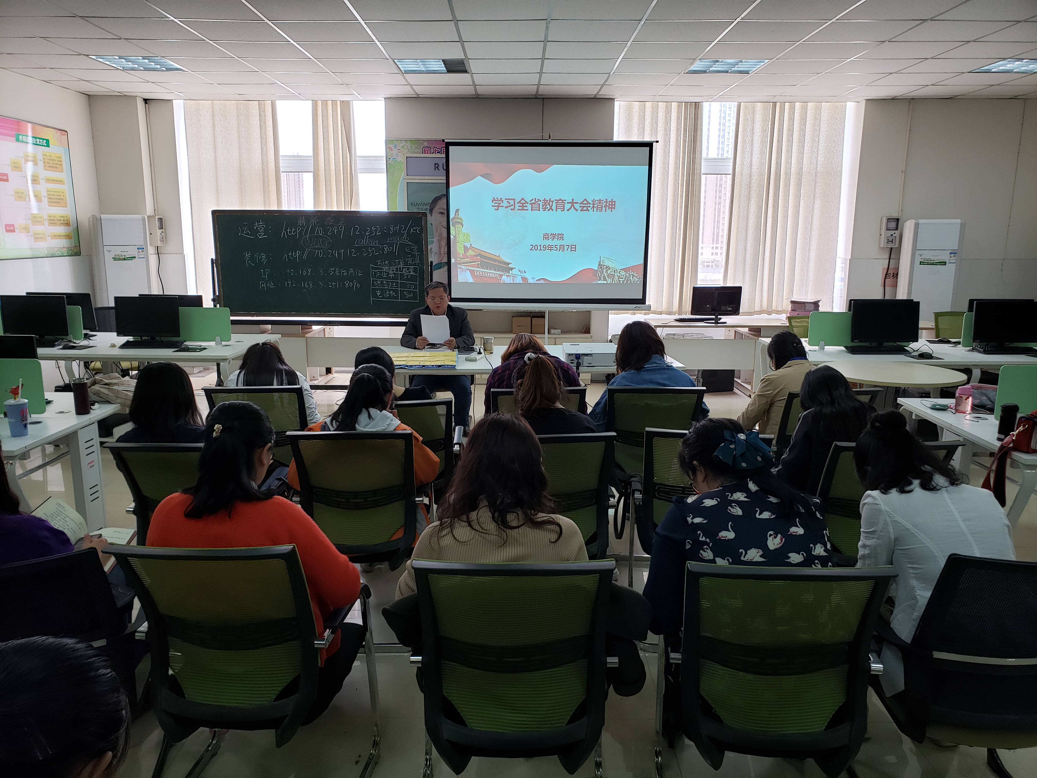 2019年5月7日,3044永利集团全体教职工在E609教室学习全省教育大会精神。3044永利集团经理孙勇同志主持会议。