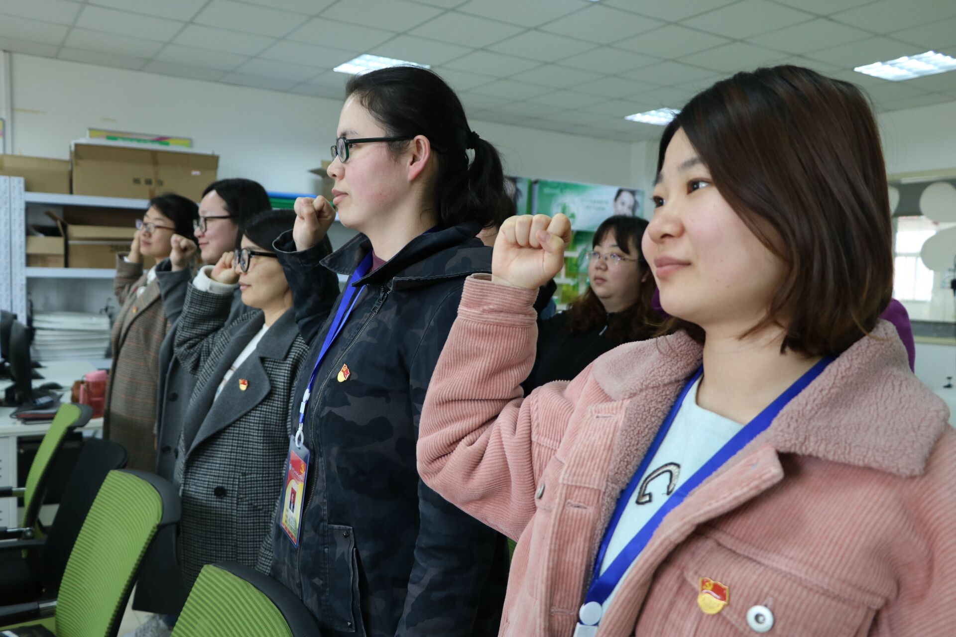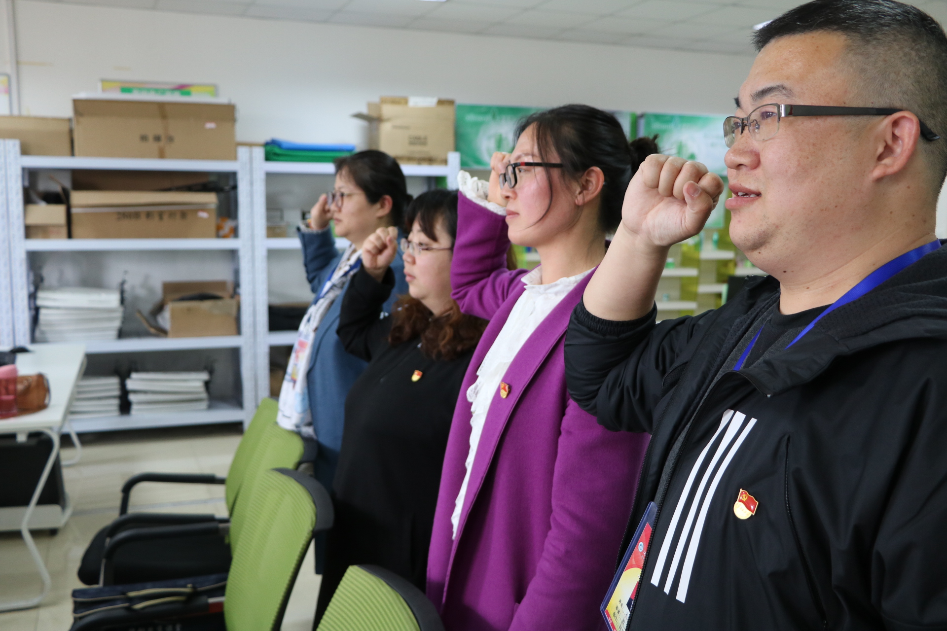随后,全体党员在孙勇经理的带领下学习了《关于党徽佩戴和管理工作的通知》,并举行了庄严的党员徽章佩戴仪式。孙勇经理和周燕书记为每位党员佩戴党员徽章,带领大家重温入党誓词。当鲜红的党员徽章佩戴在同志们的胸前时,党员的身份被亮明,党员光辉形象自然呈现,自豪感和使命感油然而生。