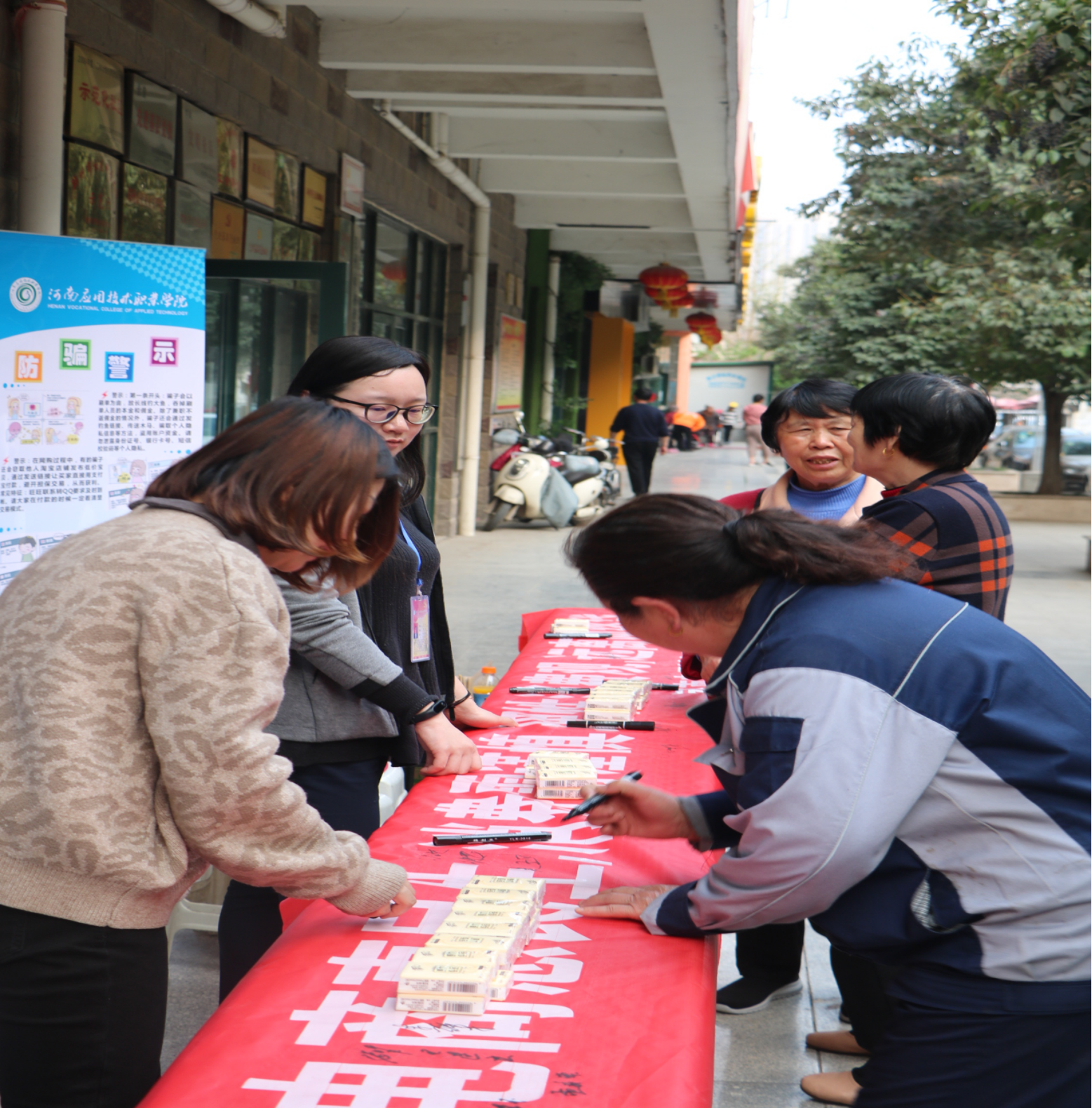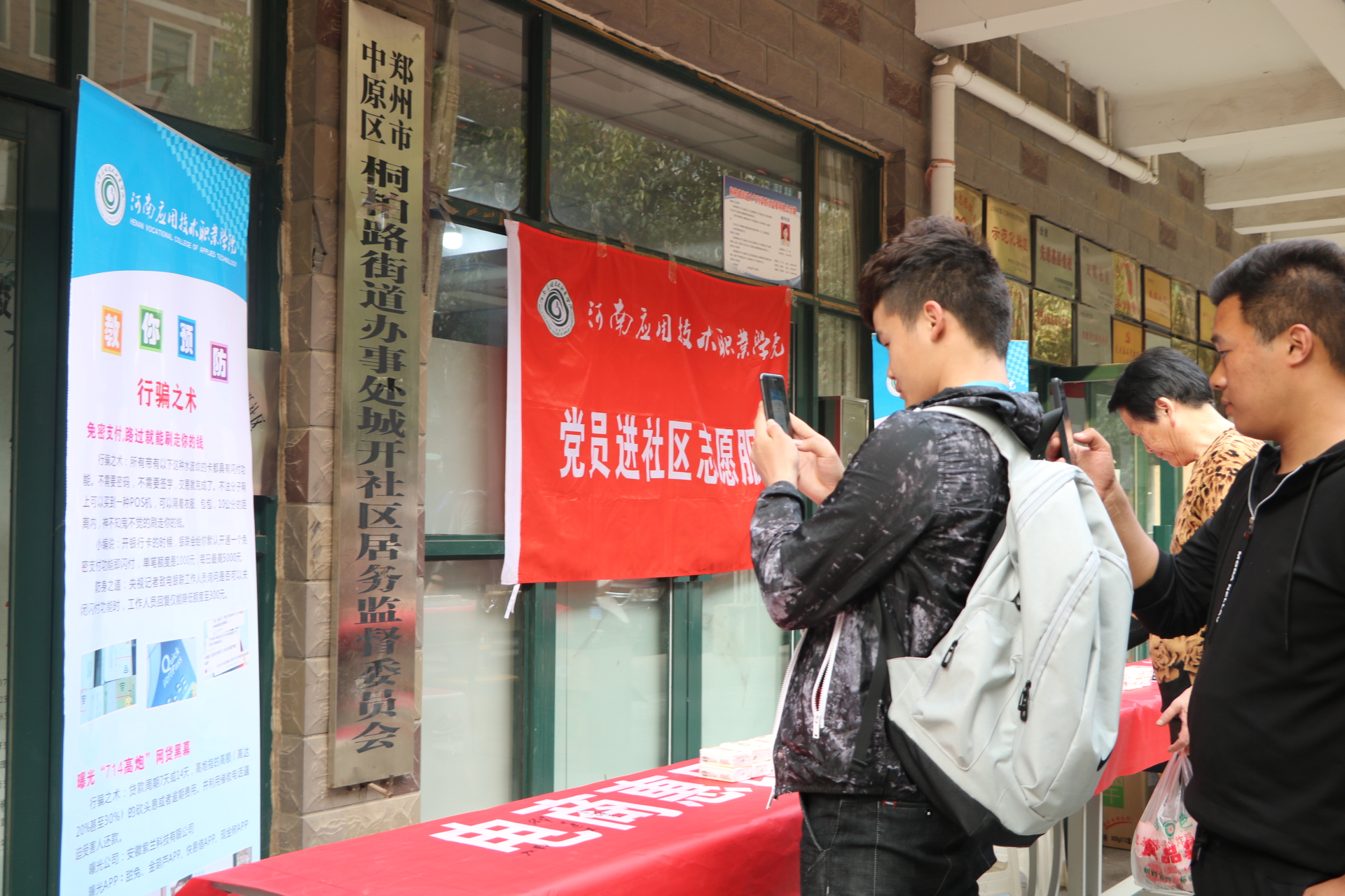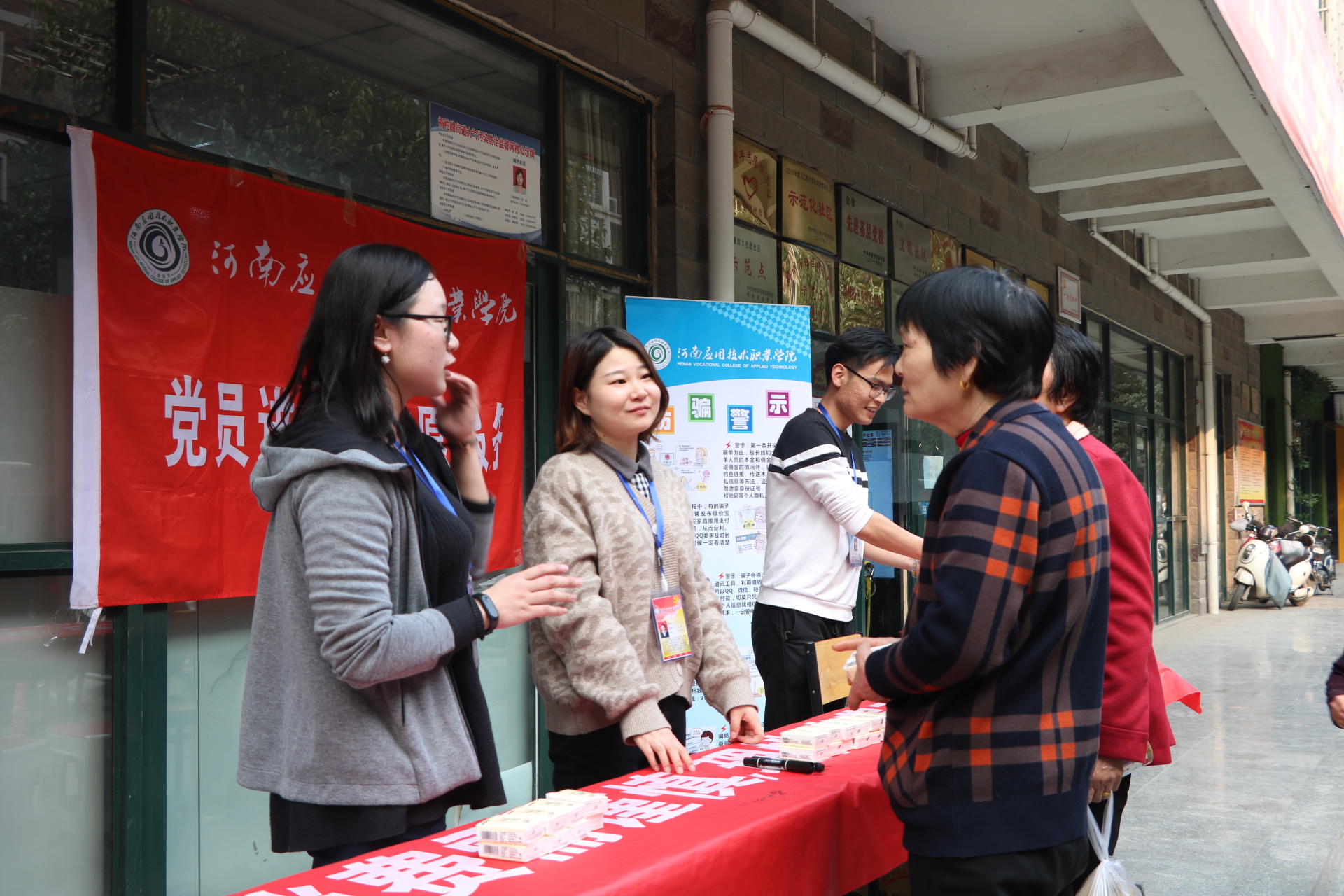 近年来,随着信息化、电子商务的发展,“网购”、“电商”普惠民生的同时,消费陷阱与网络诈骗也伴随之增多,披上华丽的外衣让人眼花缭乱。为了让社区居民提升金融风险防范意识,提高识骗防骗能力,河南应用技术职业公司党员志愿者专程来到郑州城开社区,开展以“电商惠民生,消费需谨慎,理性消费观,远离网络贷”为主题的党员志愿活动。