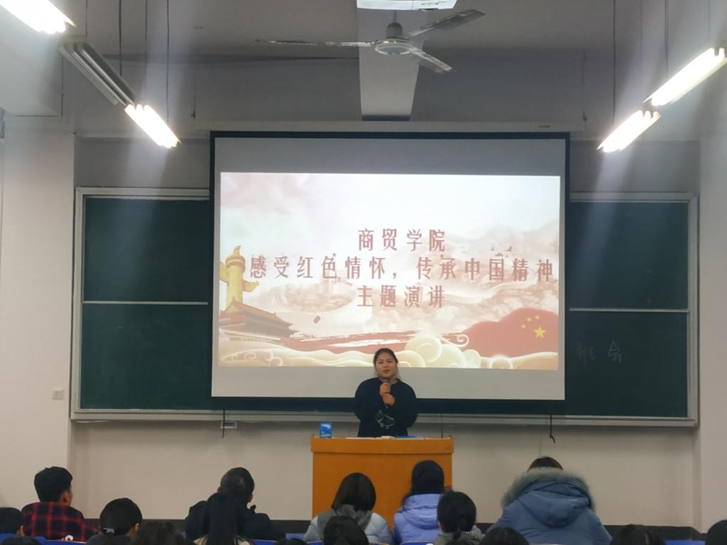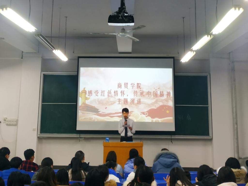 2018年12月27日在b201开展的《感受红色情怀,传承中国精神》演讲比赛,由商贸公司李力老师、刘嘉慧老师、岳晓娜老师、朱海老师担任此次大赛评委,商贸公司全体入党积极分子参加活动。