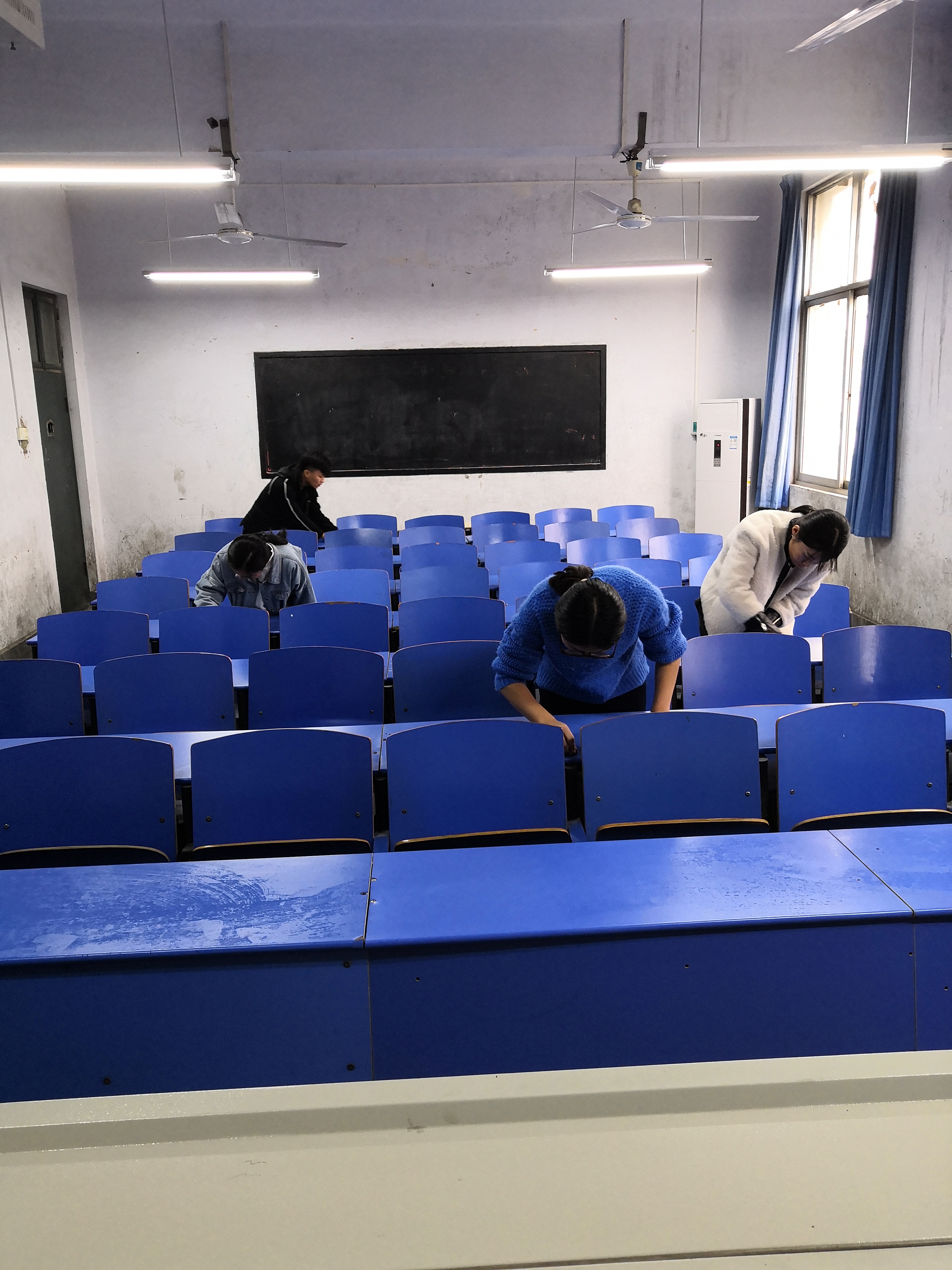为了创建美好校园,营造良好学习环境,2018年11月20日下午商贸公司组织四十多名入党积极分子在公司A楼4楼开展志愿服务活动,对教室内乱摆乱放、乱涂乱放、乱张贴等不文明现象进行清洁和整理。