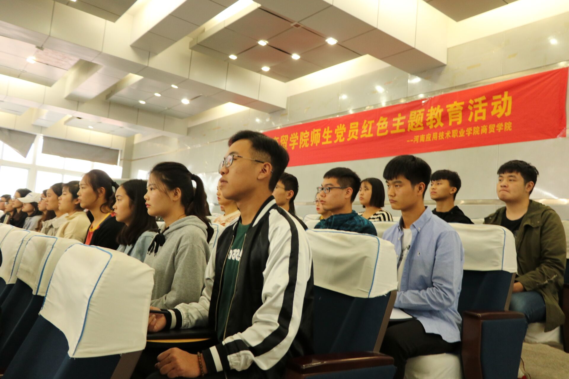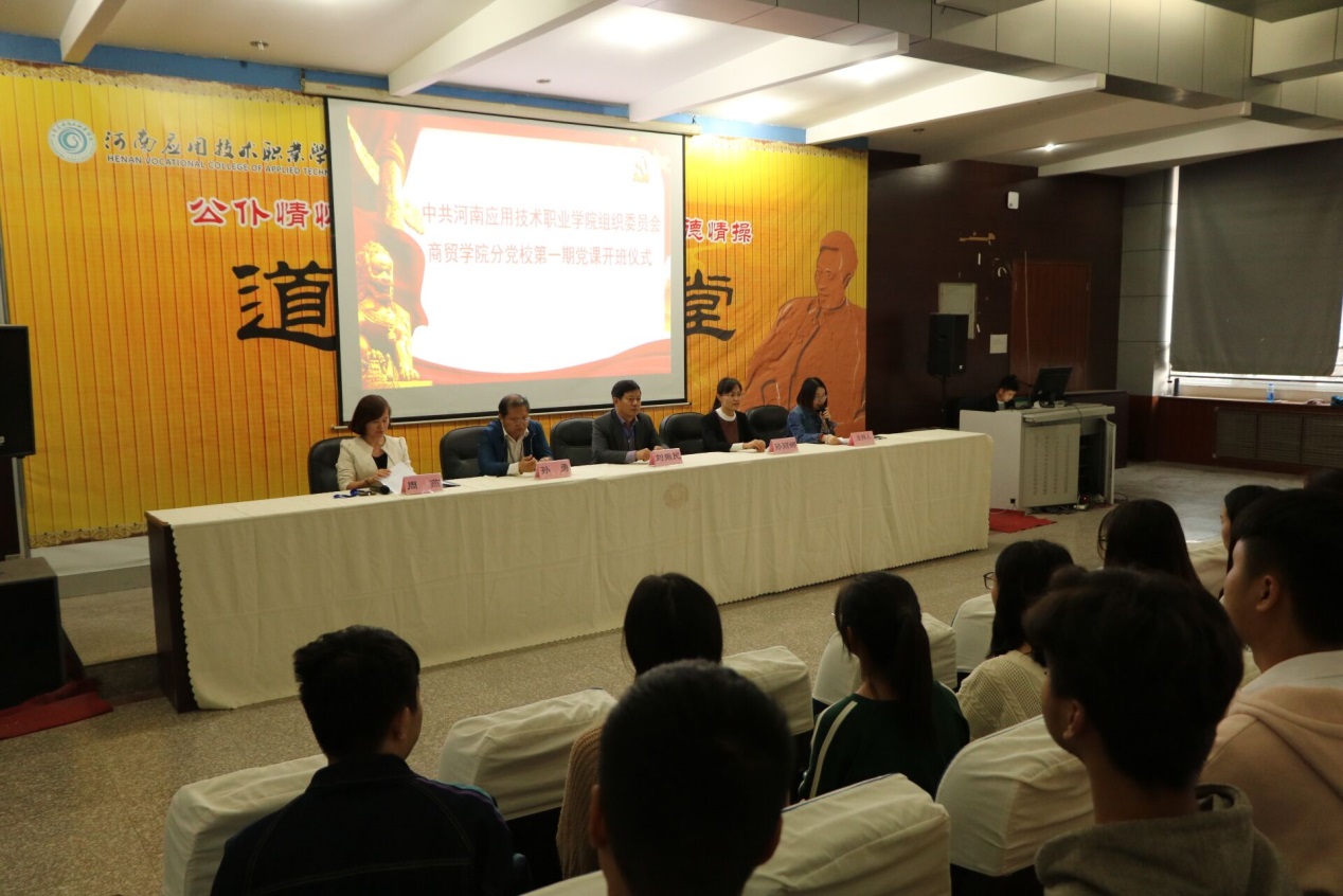 2018年10月 17日下午,商贸公司党总支在二号教学楼学术报告厅举办中共永利3044集团组织委员会商贸公司分党校第一期党课开班典礼。公司党委办公室刘振民处长、组织人事处孙丽娜副处长,商贸公司分党校董事长周燕书记以及副董事长孙勇经理出席。典礼由院团总支李力书记主持,商贸公司114名入党积极分子参加。