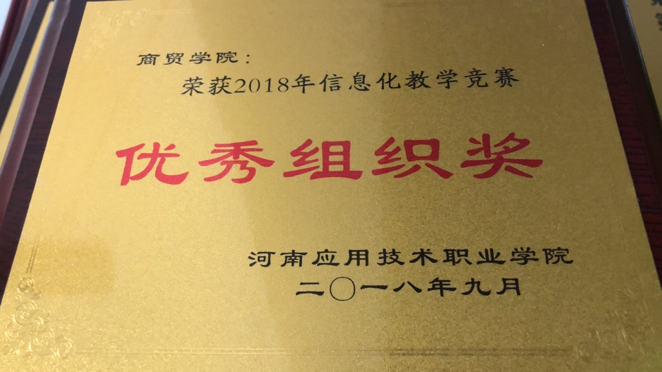 商贸公司提交作品质量高、数量多,荣获优秀组织奖。其中王珂、乔晓娜、周扬杨老师合作的《为配送中心选址》荣获“信息化教学设计”赛项一等奖,吴昀、王珂、孙勇老师合作的《电商伴我行》荣获“信息化课堂”赛项一等奖;刘傲宇老师完成的《仓储作业管理》,范丽丽、侯鸿雁、刘嘉慧老师合作的《决策管理的应用》两个作品荣获“信息化教学设计”赛项二等奖;范佳森、刘傲宇老师合作的《市场定位》,刘嘉慧、范佳森、侯鸿雁老师合作的《消费者争议的解决》分别荣获“微课”和“信息化课堂”赛项三等奖。