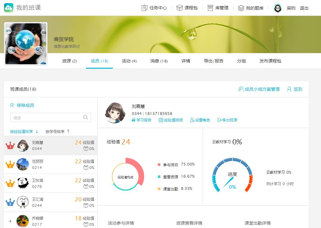 各位老师利用吴昀老师发的安装程序用自己的手机下载APP再进行蓝墨云班课的具体操作。云班课是在移动网络环境下,利用移动智能设备开展课堂内外即时反馈互动教学的云服务平台。平台以教师在云端创建的班群和班课空间为基础,为员工提供移动设备上的课程订阅、消息推送、作业、课件、视频和资料服务。在云班课的界面里,教师可以像创建QQ群一样来创建一个或多个学科班课,每个班课都有一个邀请码,教师在课堂上或者通过QQ、微信等方式将邀请码公布,员工使用邀请码加入班课,这样教师就可以通过云班课来管理班里的每一个员工了。