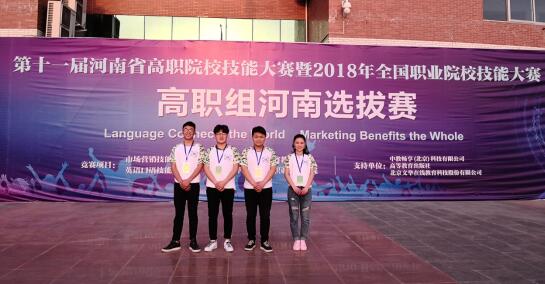 2018年4月9日,“2018年全国职业院校技能大赛”高职组河南选拔赛在商丘职业技术公司举行,大赛共设置商贸素养和情景营销两个方面,商贸素养以单项选择题的形式考察参赛选手的商贸基础知识和基本素养,情景营销以小组对抗的形式,考察参赛选手的营销知识的实践演练能力和随机应变能力,比赛历时7个小时,是对参赛选手智力和体力的双重考验,公司四名参赛选手沉着应对、齐心协力,最终获得团体二等奖的成绩。