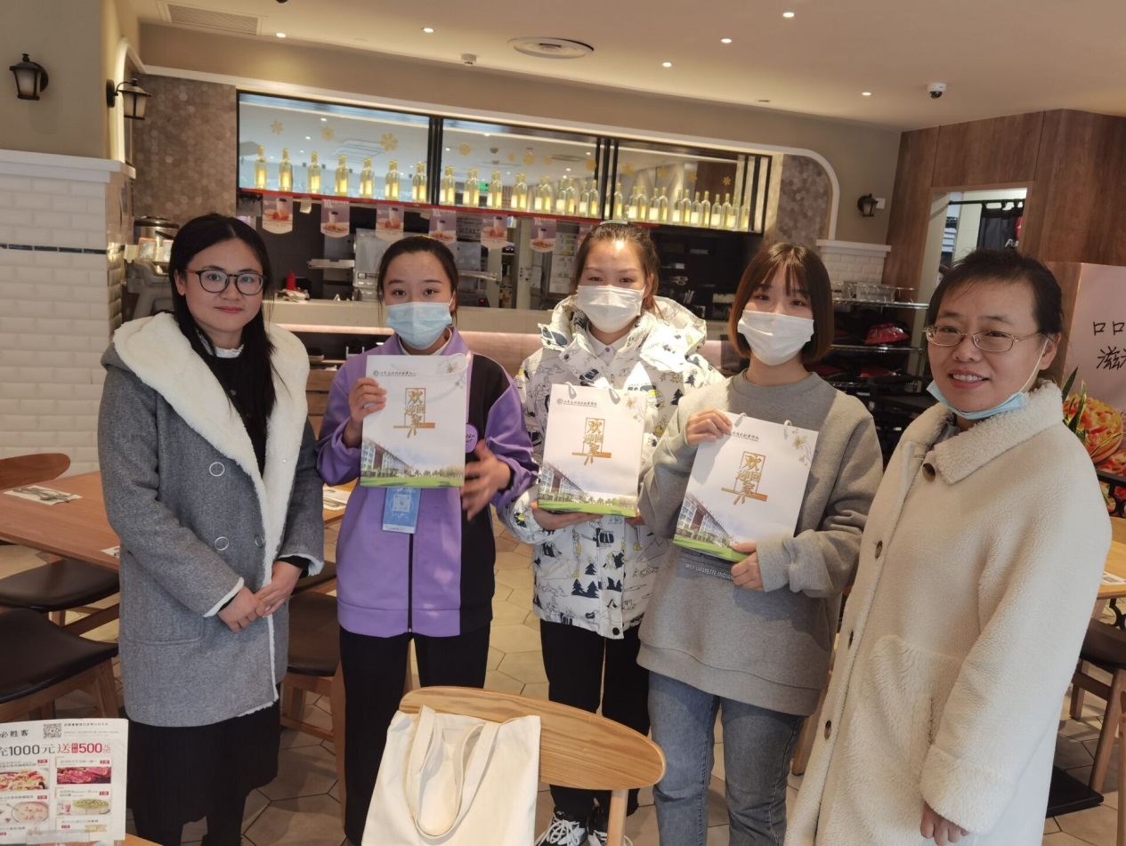 2020年12月3日,3044永利集团办公室主任刘嘉慧、工商教研室主任范丽丽、连锁专业负责人兼工学交替指导老师侯鸿雁赴必胜客中原万达、华都两个门店看望参加工学交替的员工,并给每位同学发放疫情防控物资。
