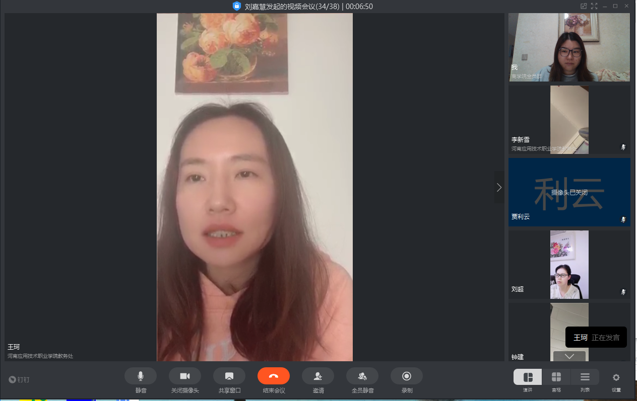首先,教学办王珂老师用详实的数据通报了前10周网课运行的具体情况。针对网络教学过程中存在的问题,希望各位老师能将网络课程设计的更加合理,适当融入课程思政因素,理论讲解和实例枚举要融合,PPT内容要丰富生动,时刻关注员工到课率,如有异常及时与辅导员联系,对有难度的课程讲解要清晰分明。