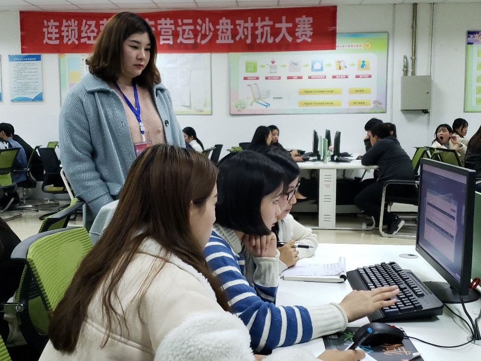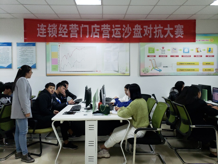 连锁经营技能大赛是高职院校连锁专业检验员工学习成果的重要展示之一,既能通过大赛让参与者体验承担经营风险与责任,又可以让参与者真切感受到市场竞争的精彩与残酷。商贸公司刘嘉慧、侯鸿雁两位老师对连锁1701同学进行模拟经营指导过程中,员工会有很多问题咨询,询问,讨论,将理论知识运用到实践中,员工会从实践中发现问题、讨论问题和解决问题。这也正体现了理论与实践相结合的作用,并能够深入认识连锁门店在运营中的管理理念。