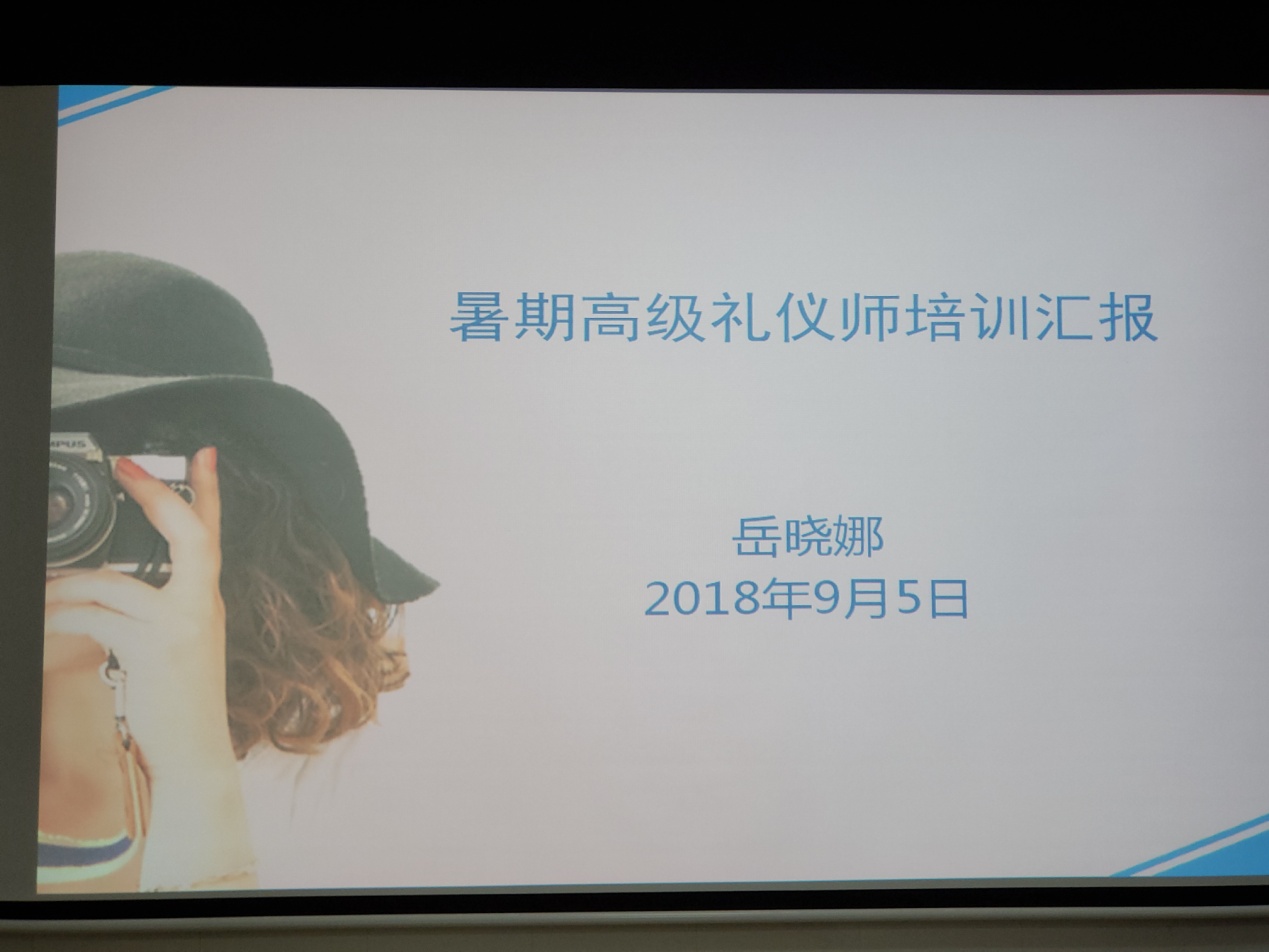 2018年夏天,岳晓娜老师到上海参加了为期7天的全国第三期高级礼仪师培训,整个培训贯彻理论联系实际的原则,聘请的授课教师团队既包括著名旅游院校资深教师、高职教育权威专家,还有行业协会知名人士。教学安排合理,有鲜明的理论性、现实性、针对性与实践性。本次培训由上海旅游高等专科公司主办。