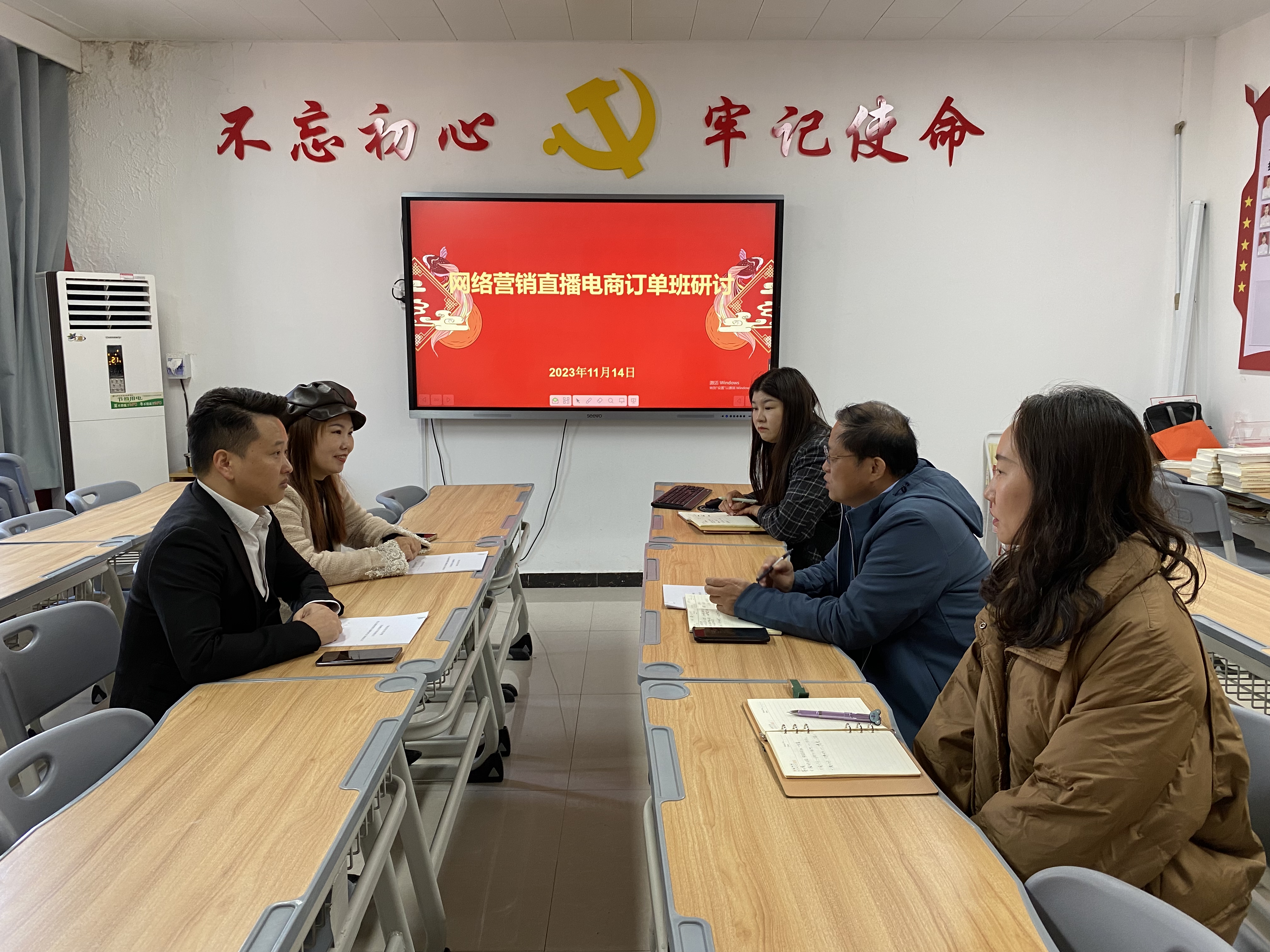 11月14日, 河南博堂电子科技有限公司总经理伦敬凯一行莅临公司3044永利集团就联合开展网络营销直播电商订单班事宜进行研讨交流。经理孙勇、副经理王珂,及相关专业教师参加会议。会议由办公室主任刘嘉慧主持。