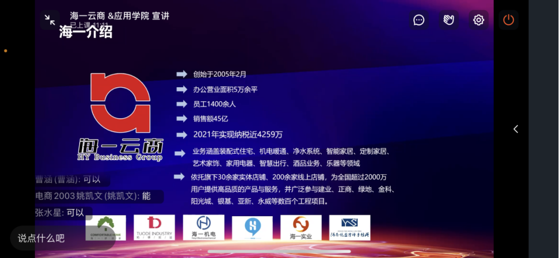 海一云商集团的人事经理徐亚楠介绍了公司的发展历程、经营情况、发展渠道、岗位需求、员工待遇等内容,让员工对企业有了更加全面的了解,为同学们的发展提供好的平台。