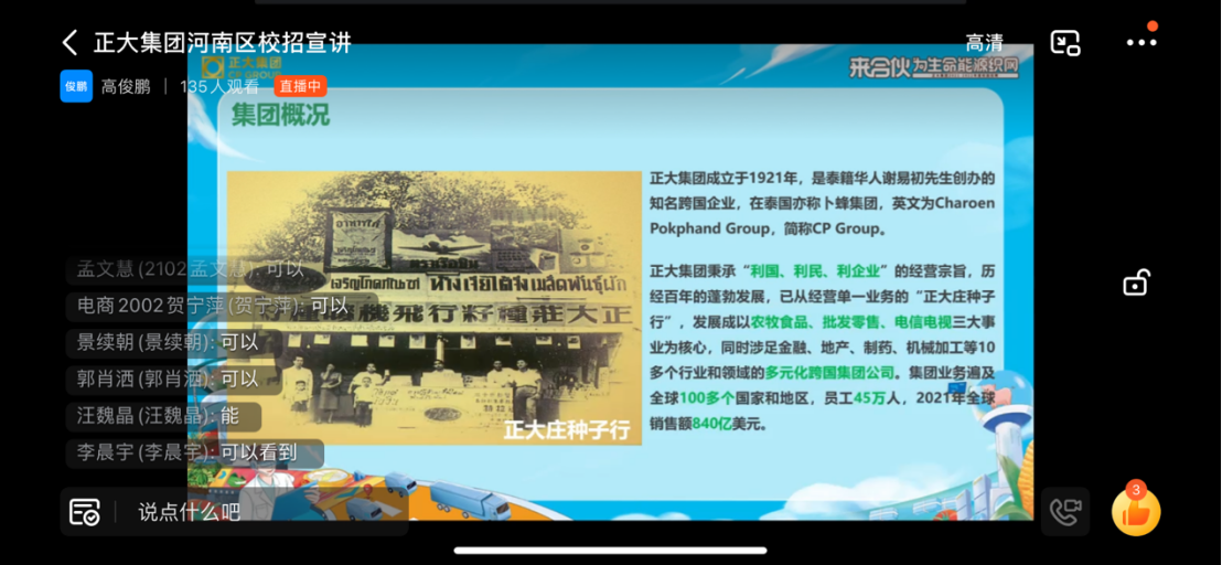 此次宣讲会充分利用网络资源优势,突破了疫情、时间和地域的限制,搭建了员工与企业沟通交流的平台,使同学们对企业和招聘要求都有了进一步的了解和认识。