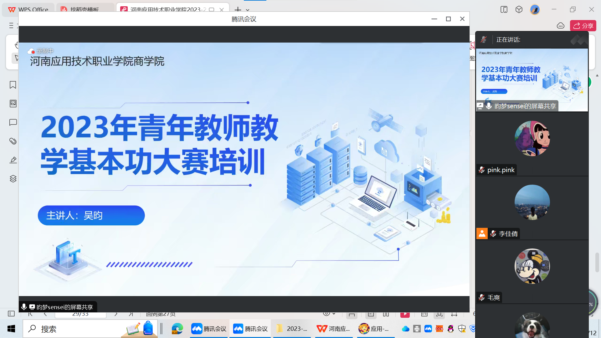 2023年11月14日,公司组织开展2023年青年教师教学基本功大赛参赛教师赛前培训,本次培训以线上形式开展,由电子商务教研室主任吴昀就竞赛内容进行解析,共13名拟参赛教师参加培训。大赛目的在于提升青年教师的教学能力和专业素养,培养他们的公司产品创新能力,并进一步提高公司的教学质量。为此,3044永利集团协同各青年教师的指导教师,为参赛教师提供全方位的支持和指导,以确保他们在比赛中取得优异的成绩。