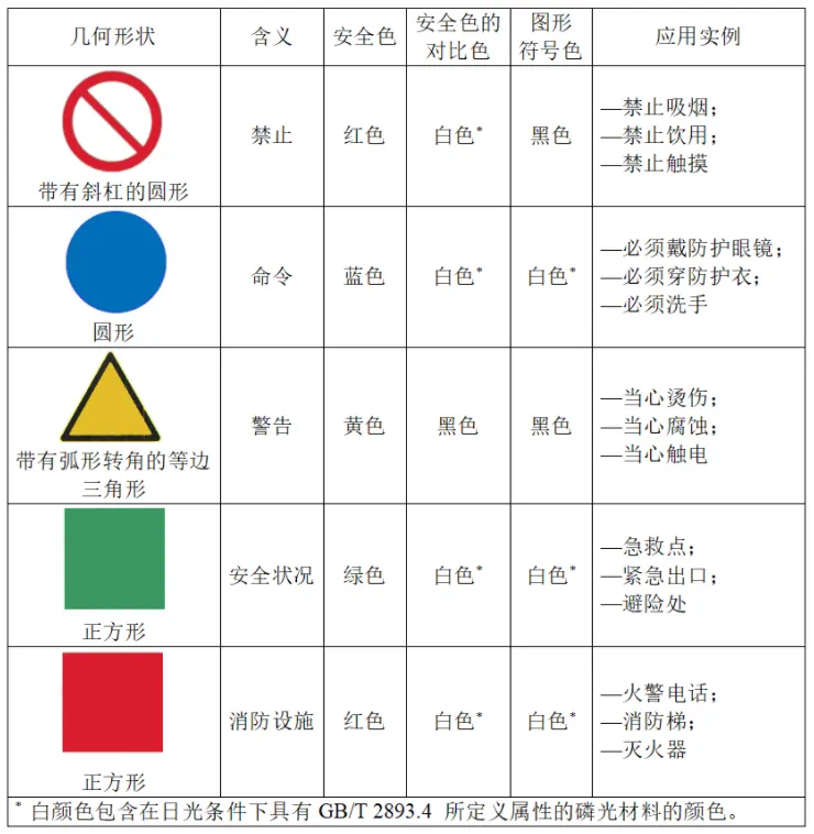 安全标识是用以表达特定安全信息的标识,由图形符号、安全色、几何形状(边框)或文字构成。根据其功能分为以下5类: