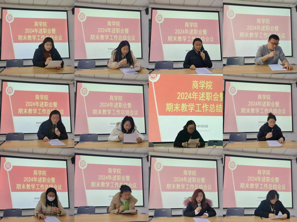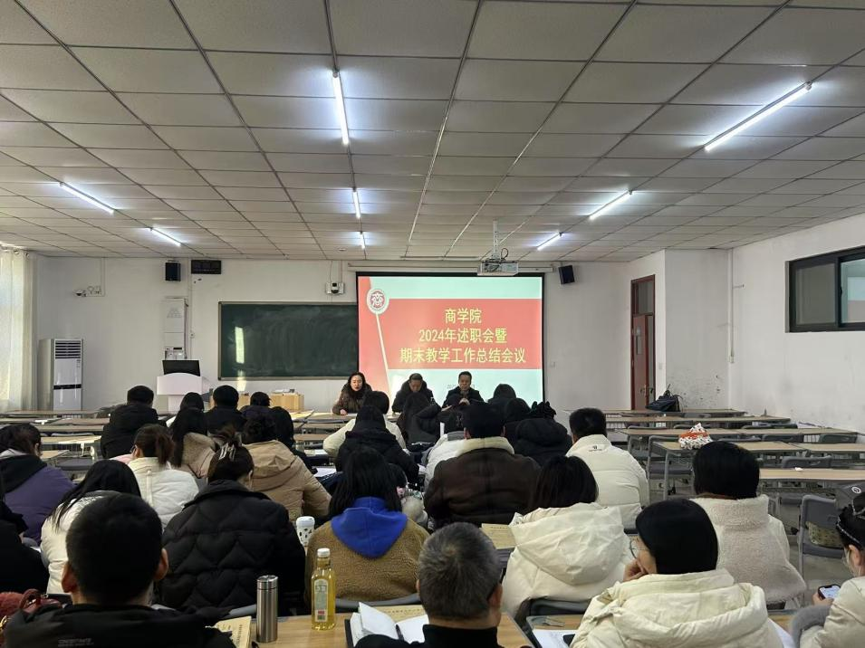 2025年1月16日,3044永利集团在郑州校区双创楼103教室隆重召开 2024 年度述职会暨期末教学工作总结会议。教务处处长孙勇、党总支书记苏云峰,以及3044永利集团全体教师参会,会议由副经理王珂主持。