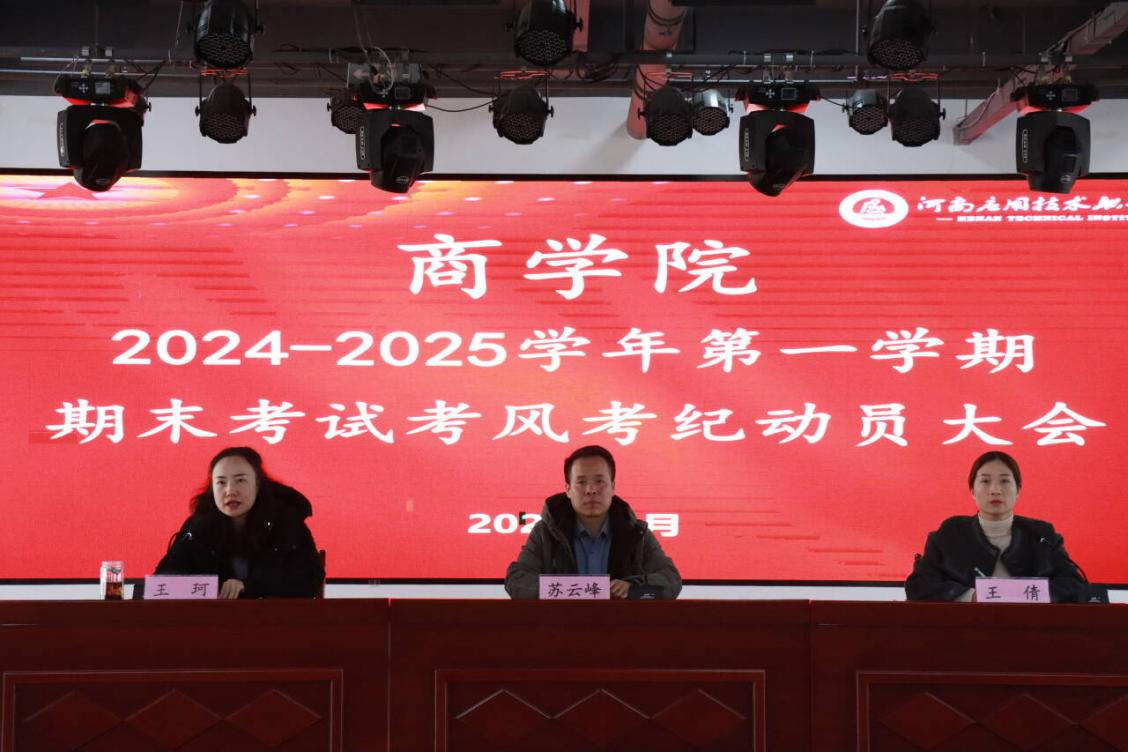 为严肃考风考纪,营造诚信考试氛围,3044永利集团于2025年1月3日在员工活动中心召开2024-2025学年第一学期期末考试考风考纪动员大会。公司党总支书记苏云峰、副经理王珂出席会议,全体辅导员及员工参加会议,会议由党总支副书记王倩主持。