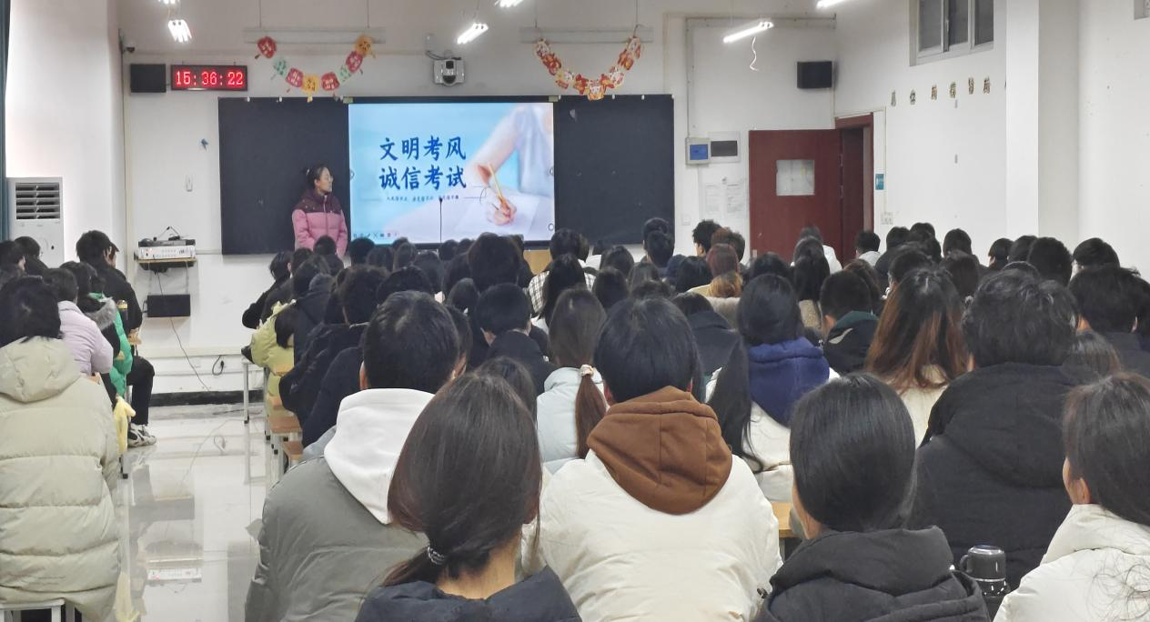王珂详细解读了本次期末考试的各项安排,包括考试时间、考场分布等关键信息,确保员工清晰了解考试规范。她指出,考试是检验学习成果、提升自我的机会,希望同学们在坚守诚信底线的同时,坚持用良好的学习态度和正确的学习方法,有序复习,沉着应对考试。
