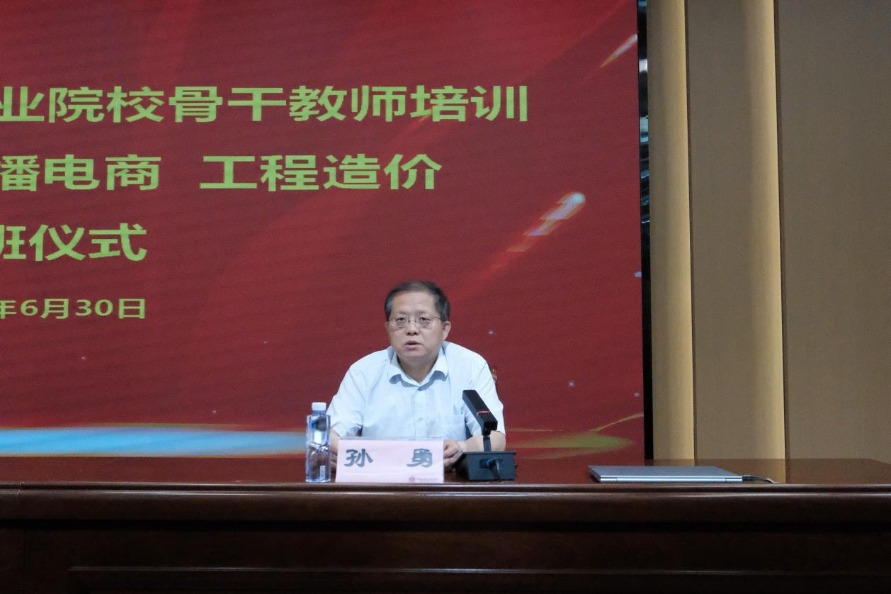 6月30日上午,公司承办的2025年河南省职业院校骨干教师(网络营销与直播电商、工程造价)培训开班仪式在郑州校区隆重举行。副董事长黄振中、教务处处长孙勇、建筑工程公司经理李勇出席仪式,仪式由李勇主持。