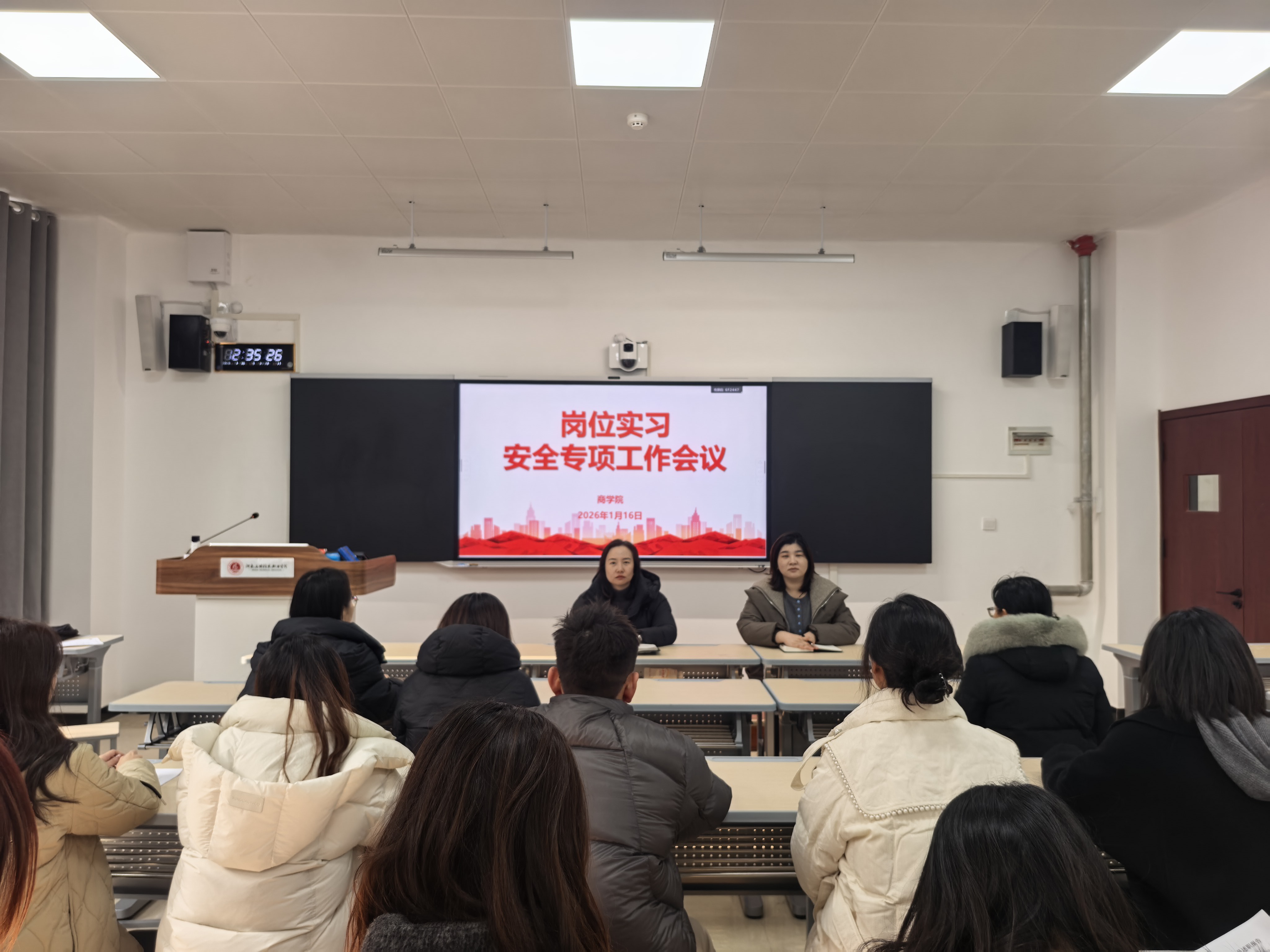 会上,参会教师围绕寒假实习员工安全保障措施细化及员工实际需求等内容展开深入交流探讨,为后续精准开展实习指导、筑牢安全防线梳理清晰思路,凝聚广泛共识。