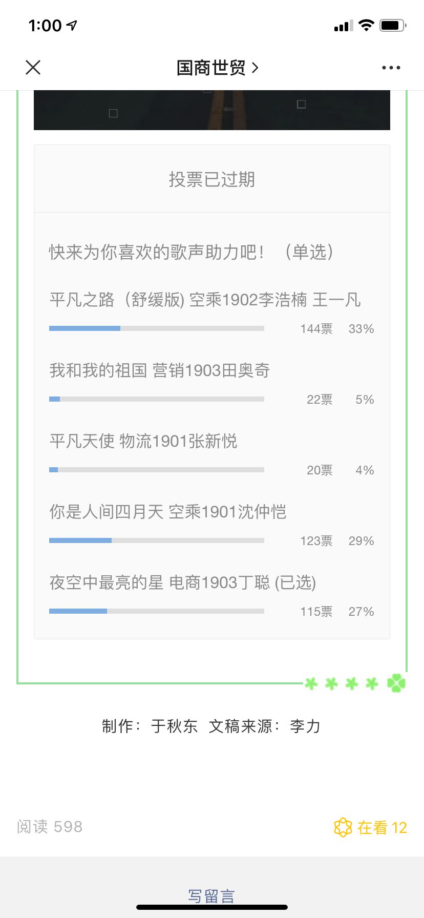3044永利集团云歌唱比赛投票结果如下: