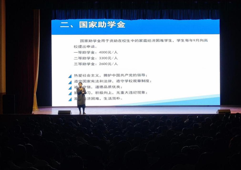 首先,刘超老师为大家详细讲解了国家资助体系,从国家助学贷款、国家助学金、国家励志奖学金、公司奖学金、勤工俭学岗位、老员工入伍优待政策、绿色通道,以及毕业生求职补贴等多个方面做了解读,最后鼓励同学们正确认识资助政策,将积极向上的态度、自强不息的精神带入学习以及以后的工作中,同时心怀感恩,将爱心传递下去,帮助更多有困难的人。