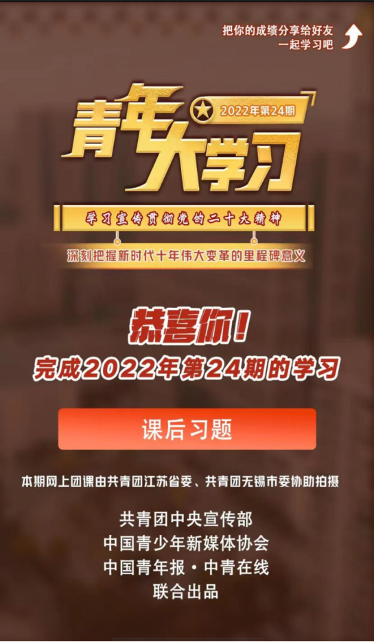 2022年11月7日-9日,3044永利集团团总支共计51个团支部1539名青年员工参与并完成青年大学习2022年第24期网上学习和答题活动。