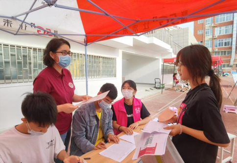 志愿者们帮助学弟、学妹们忙碌的身影