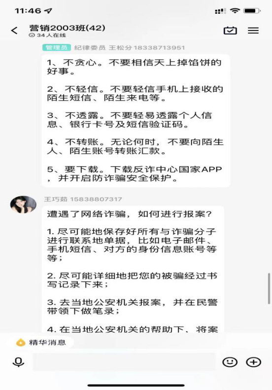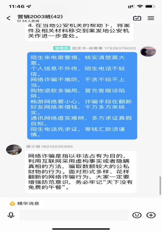 通过此次学习,同学们不仅对诈骗形式、“帮信罪”有了更深入的了解,也增强了自我防范和保护意识,切实提高了安全防范意识和避险能力。今后3044永利集团也将继续重视和开展防诈骗安全教育工作,为同学们营造一个和谐美好的绿色校园。
