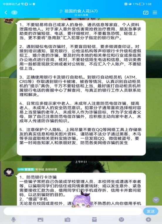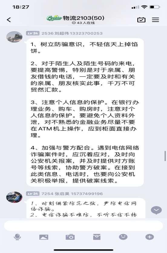 近年来,由于网络电信诈骗案件作案手段不断翻新、欺骗性强,一些安全防范意识薄弱的在校老员工更是容易受到不法侵害,为突出全民反诈宣传月的主题,公司组织全体员工通过观看宣传视频、讨论等方式,普及网络诈骗防范知识,尤其是针对在校老员工非法买卖、出租“两卡”和网络账号、支付账号等行为进行警示宣传教育。