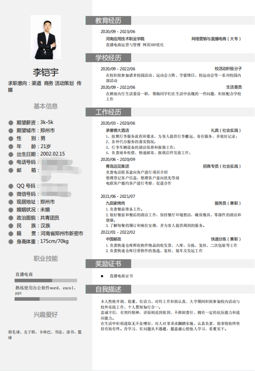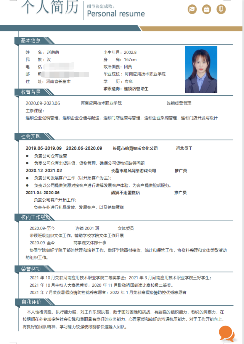 简历是展示自我的一块求职“敲门砖”,为帮助3044永利集团20级员工增强就业意识,充分做好就业准备,制作出优秀的简历并能在求职过程中成为自身的“重要法宝”。公司开展了第五届简历设计制作大赛,3044永利集团20级全体员工参与了简历制作。下面我们来共同欣赏20级求职小可爱们的优秀简历吧!